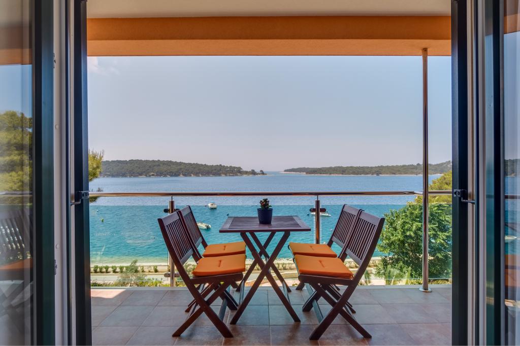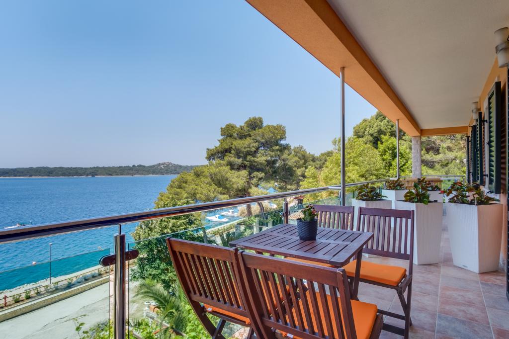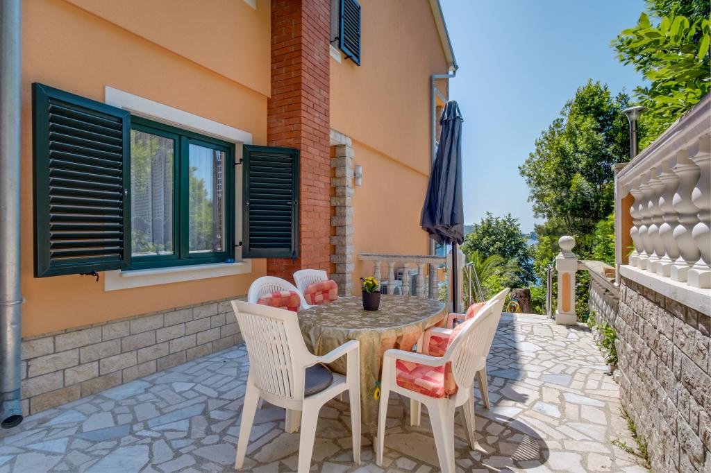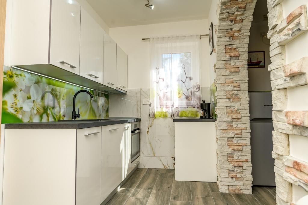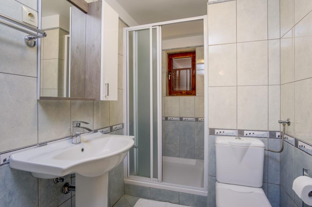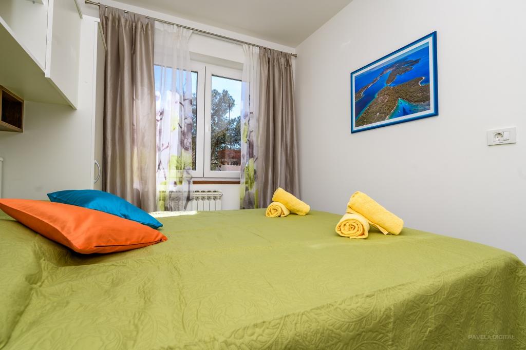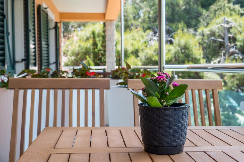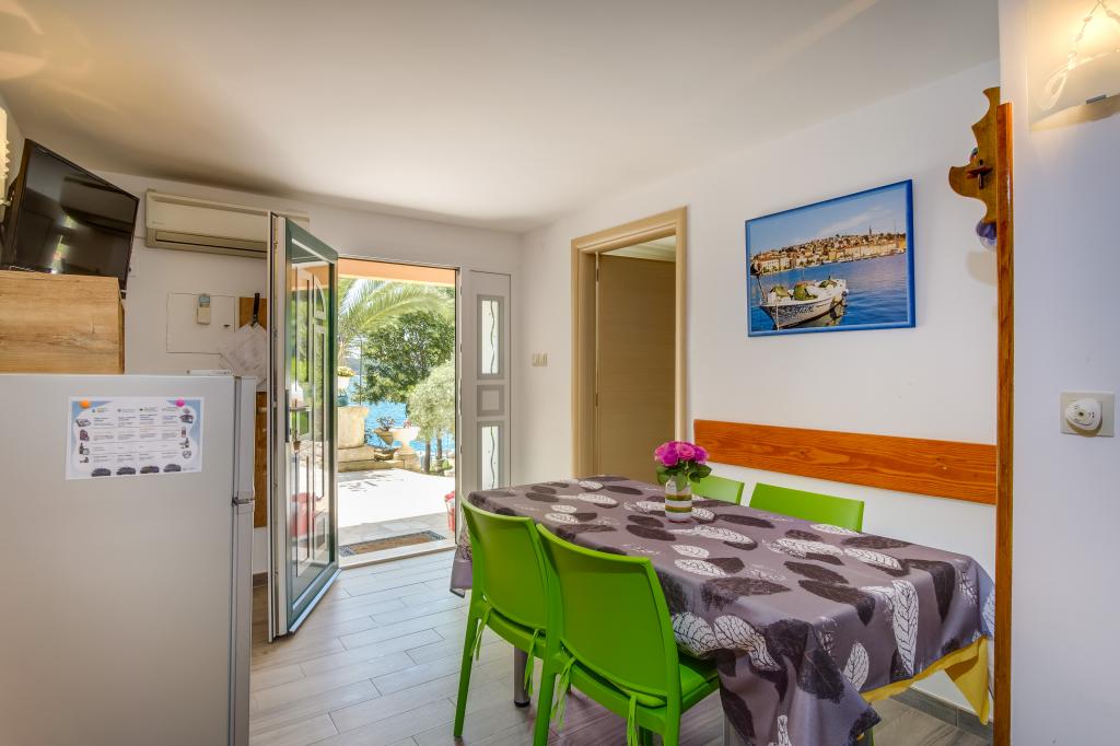 Private house by the sea between pine trees in a very quiet neighborhood with family houses. The house has four apartments with sea view. A barbecue is available next to the house. Apartments for 2 2 persons Kamelia, Lavanda and Magnolia consist of a room with a double bed, a kitchenette with all appliances, and a large living room with a dining room from which there is a view of the sea and an exit to the balcony. There are also two separate beds in the living room. The apartment also has a bathroom with a shower. In the apartment for 4 1 persons Gardenia there are two rooms with a double bed and in one there is a third bed and both have a view of the terrace and the sea, a kitchen with a dining room and all appliances and a bathroom with a shower cabin. The apartments also have televisions with satellite reception. In the immediate vicinity of the settlement, only 5 minutes on foot (200m), there is also the Poljana car camp with a restaurant, shop and play area for children (swings, slides, jumping rope).