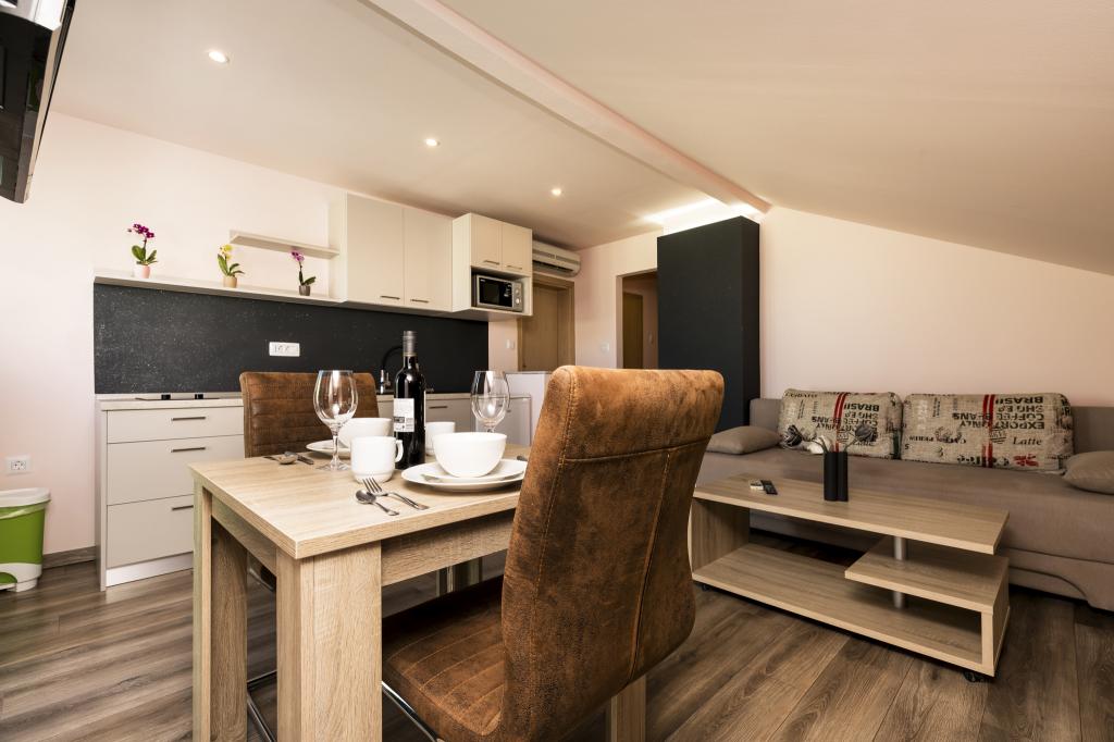 The host Adı received us very kindly and took great care of us. The room we had was simple but well equipped with everything we needed. Neat and clean. The apartments are located right next to the main road and are thus easily accessible by car, there is no "crowding" in the narrow streets, plus the parking lot is spacious. Despite the fact that the apartments are close to the road, it is still quiet, only crickets can be heard. Breakfast on the beautiful terrace is extremely rich and varied. The main square can be reached on foot through a series of stairs, which takes 5-6 minutes to reach the Čikat cove with its beautifully landscaped beach. Thank you very much once again for your hospitality. We really enjoyed it.