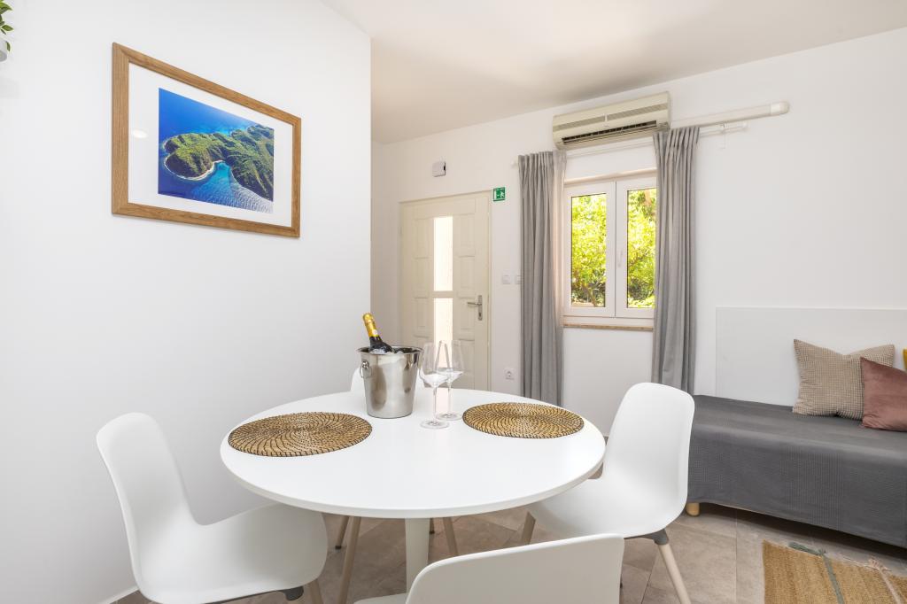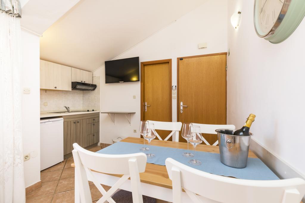 Read more Accommodation units• The price does not include (but is stated) a residence tax, which is charged per person per day • Children under the age of 12 are free from payment of residence tax, 12-18 years old pay 50% • Children up to 2 years free if not using an extra bed • Children from 2 to 12 years old if they do not use the extra bed are charged EUR 5 per day • Extra bed EUR 8 per day • Pets are allowed EUR 8 per day • For stays of one night a surcharge of 50% is charged, while for a stay of 2 to 3 nights the surcharge is 30% • Bed linen, gas costs, el. energy, water and final cleaning are included in the price • Boat rental, boat berth, breakfast, dewatering and other services are not included in the price and are payable directly to the landlord