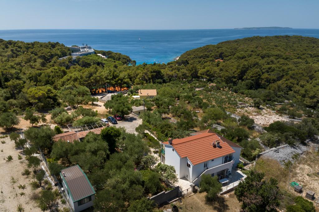 The house is located in Sunčana uvala on Mali Lošinj, in a perfect quiet location, surrounded by greenery and the scent of island aromatic plants. The most beautiful beaches of Sunčana uvala and Čikat are just a 5-minute walk away, and the city center with shops, restaurants, cafes and other amenities is just a 10-minute walk away. We offer various accommodation units, including apartments with a sea view ideal for families and couples, and one comfortable room for guests looking for something simpler. In addition to the convenient location, we offer free parking in the courtyard of the house, free internet and the possibility of using an outdoor barbecue. Book your stay with us and experience a relaxing atmosphere, beautiful nature and an unforgettable vacation by the sea!