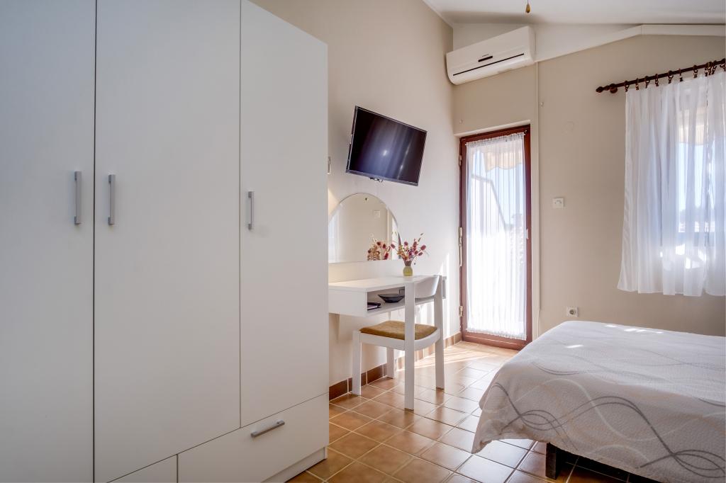Apartments ANNA 1 and ANNA 2 are part of the house of the Kerovec family. The house is located in a quiet street in the village of Artatore, surrounded by greenery. It is 120 m away from the beach. The entrances to the apartments are separate. The apartments are modernly furnished. The kitchen is equipped with utensils for preparing and eating food. In the kitchen there is a dining table and a sufficient number of chairs. The bathroom/toilet is equipped with a shower cabin. Towels are changed every 3 days. Toilet paper is provided only upon first arrival in the apartment. In the bedroom there is one double and one single bed of normal dimensions. The air conditioner in the room and the ceiling fan are used according to one's own wishes. There is a television receiver in the room. Bed linen is changed every 7 days. b Barbecue and garden furniture can be used by agreement with the host. Each apartment has a parking lot inside the house fence, where cars are protected from the sun all day.
