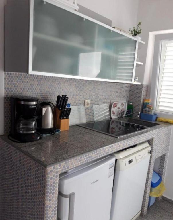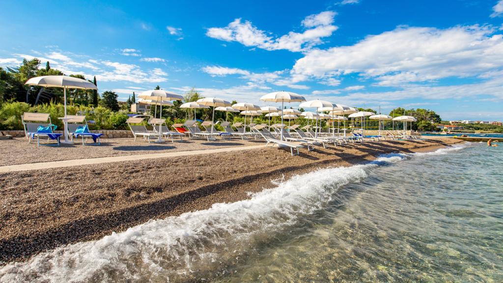 70m to the beach. Nice apartment in a great location near the sea. Kitchen with dishwasher, one room with double bed, second room with two single beds, 2 air conditioners, SAT TV, Wi-Fi, parking, guest registration. All included in the price. Close to the beach 70m, small shop 50m, children's playground 60m, restaurant 70m, bike paths, promenade by the sea. In the immediate vicinity of the wellness center, swimming pool, boat, bike, motorbike rental.