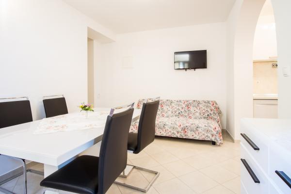 The apartment is for 4 people. We are located in a quiet part of Malinska, fully furnished apartments, the beach is 680m, the shop is 250m, the restaurant is 250m. The parking lot is big enough to park your boat... Also, the barbecue is always available.