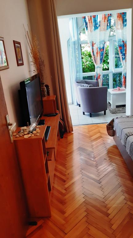 Apartments Valentin are 2 double apartments AP1 "LARGE" ( ID: 73494 ) and AP2 "SMALL" ( ID: 13633 ) with two extra beds on the GROUND FLOOR of the family house. We have been renting apartments since 2004 and hundreds of guests have stayed in our apartments - we hope they were satisfied! Each apartment has a separate entrance, parking space, air conditioning, TV in EVERY room and other equipment for a comfortable stay for two families of four. The house is located at the end of a dead end street - there is no traffic. In the yard with rich greenery there is a built-in barbecue that guests can use. The distance from the first equipped beach with showers is about 400m - about an 8-minute walk. If you like walking, you will discover various coves and beaches. The whole of Malinska is actually an equipped beach. WATCH THE VIDEO OF A WALK THROUGH THE YARD AND THE APARTMENTS!