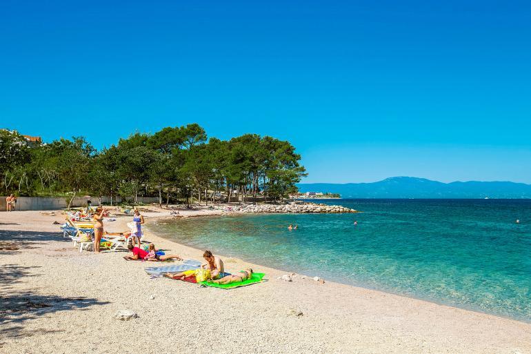 The apartment house Villa Futura is located a few minutes' walk from the pebble beach of Rova, in a quiet location, in a dead-end street. The apartment is 100 m2 in size and has three bedrooms (double), two bathrooms (one with a shower and one with a bathtub). The kitchen is connected to the dining room and living room and to the balcony or terrace. Next to the house is a larger covered parking lot and a smaller swimming pool with deckchairs for sunbathing. There is an outdoor charcoal grill next to the pool. There is a playground for children in the garden. We offer accommodation and transportation for Camina KRK hikers.