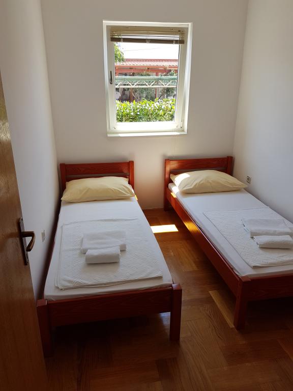 - Apartments of 62 m2 with balconies, fully furnished with 2 bedrooms, living room, kitchen, dining room, shower cabin and toilet for 4 people; air conditioning, wifi, grill, parking, TV-sat, Apartments 550 meters above the center- 10 minutes walk, 650 meters from the beach - 15 minutes walk.