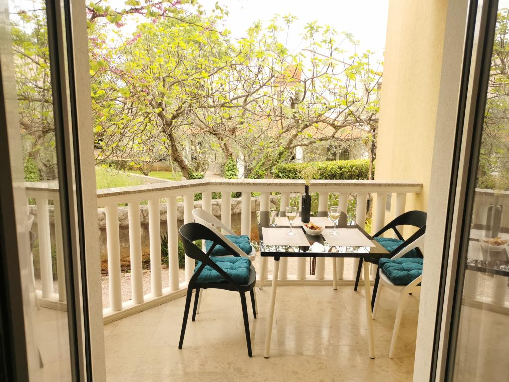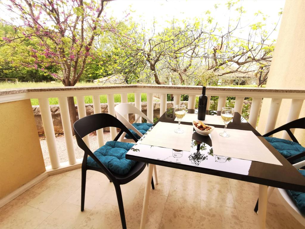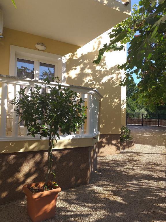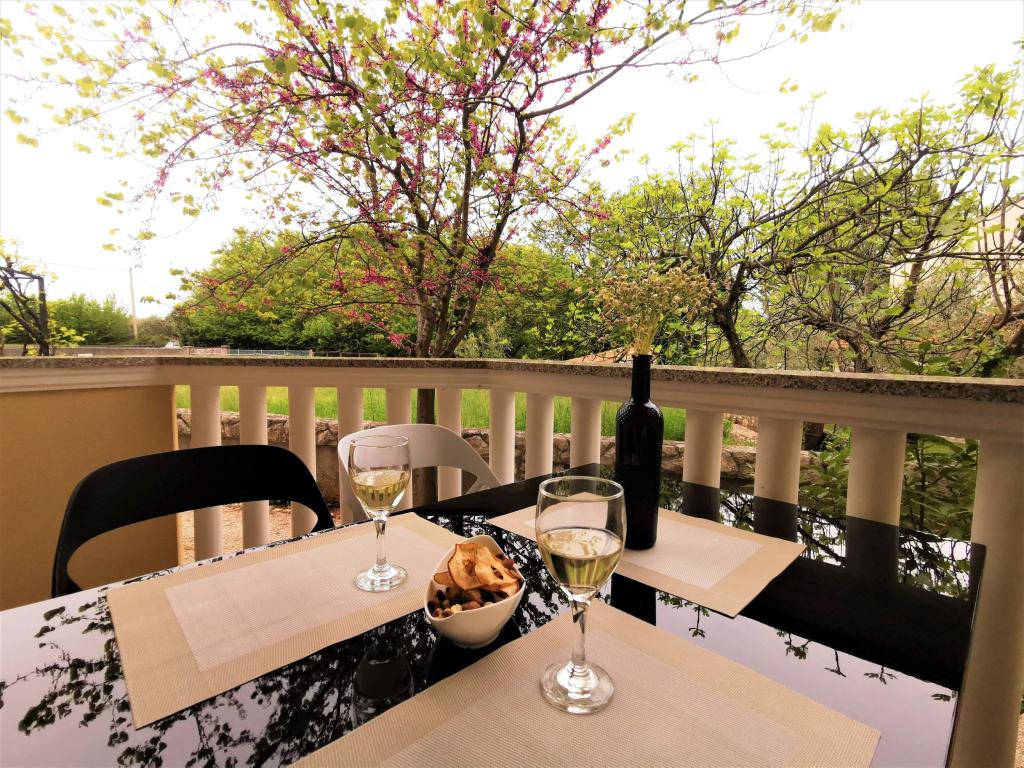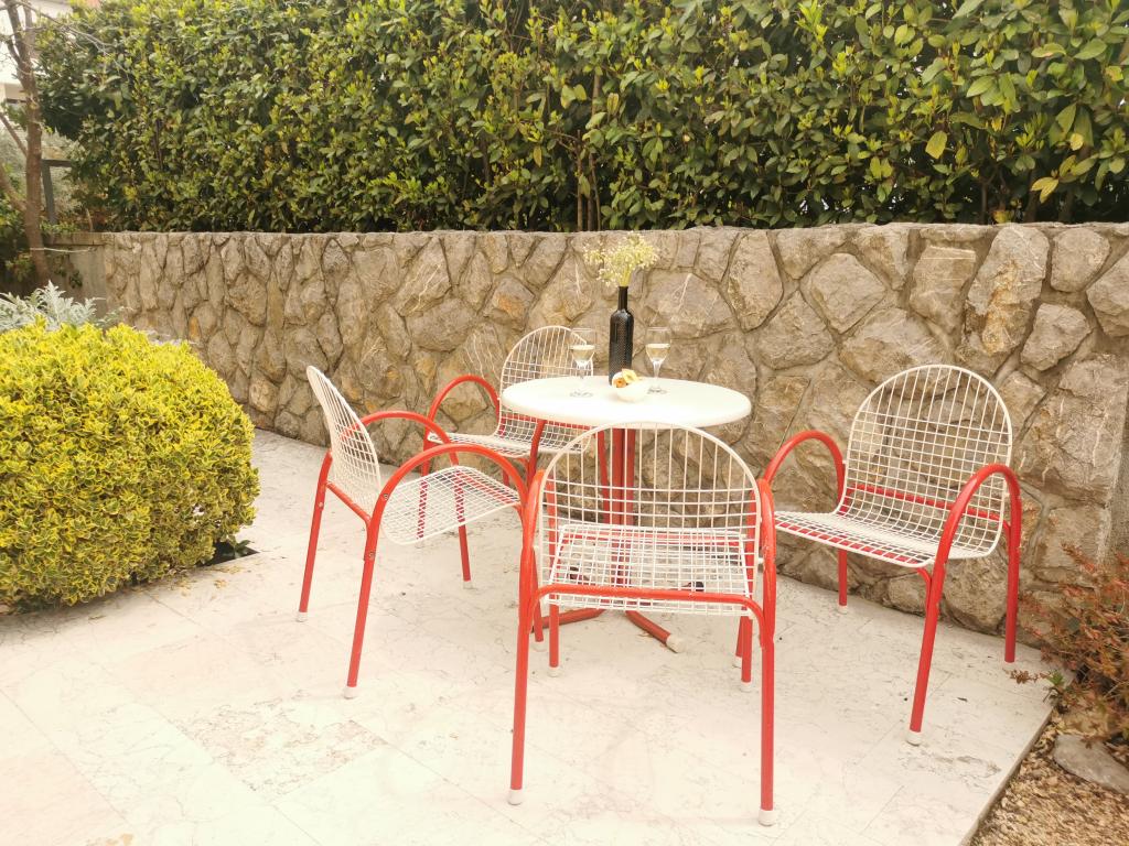 Two fully furnished apartments with separate entrances and secured parking spaces in their own closed yard and natural shade. Each apartment is air-conditioned and has a terrace. Both have WiFi, satellite programs, microwave oven, refrigerator with freezer, toaster, filter coffee machine, water heater, hair dryer, with bed linen and towels. All bedrooms have mosquito screens on the windows. It is a 10-minute walk to the nearest beach and a 40-minute walk to the center of Malinska. The apartments are part of a family house in a quiet part of Malinska and are surrounded by greenery.