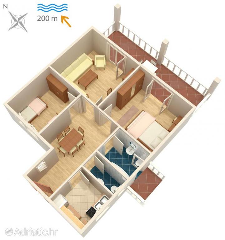 Apartments Karmelić are located in a quiet part of Malinska, close to the sea and a beautifully landscaped beach, and only a 10-minute pleasant walk to the center. The facility has one studio apartment for 2 people and one apartment for 4-6 people, categorized as 4 *, fully equipped apartments with everything you need for rest and enjoyment. The hosts live in the neighboring facility and are at your service with their kindness and hospitality whenever you wish. All guests of the apartment have parking within the facility, free WI-FI, use of the shared laundry room free of charge, and unlimited use of the shared grill in the garden. The beach of the Malin hotel is only a 3-minute walk from the apartment, and offers countless facilities for relaxation and enjoyment - from umbrellas and deck chairs, bars, restaurants to water sports, and children especially enjoy it, for which there are designated places for playing and carefree swimming. A multitude of organized excursions to places on Krk and the surrounding islands, a wealth of cultural and entertainment events will make your vacation unforgettable