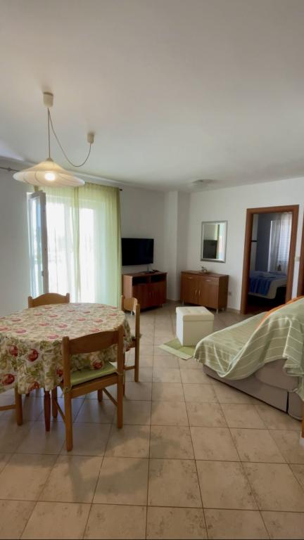 The Karuza family house is located in a quiet part of Vantačići right on the sea (50 m. to the beach and the promenade along the sea that leads to Porto 1 km. or to the center of Malinska 2.5 km.). The Karuza family is here to welcome you and introduce you to the apartment, to give you all the necessary information and ensure a pleasant vacation. We offer accommodation in apartments for four people that are equipped with two bedrooms (with a balcony) equipped with bed linen and towels; equipped kitchen, living room, bathroom and terrace with a sea view for enjoying warm summer evenings. Private parking for one car per apartment. Pets are allowed on request with an additional cost. There is a grill in the yard that can be used.