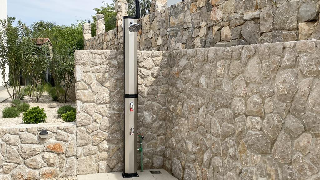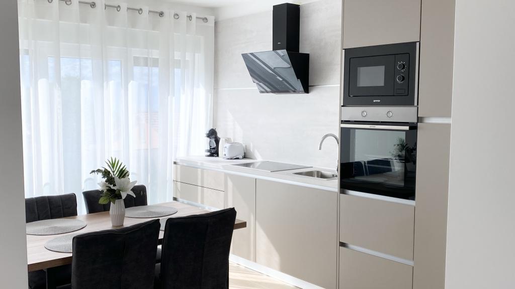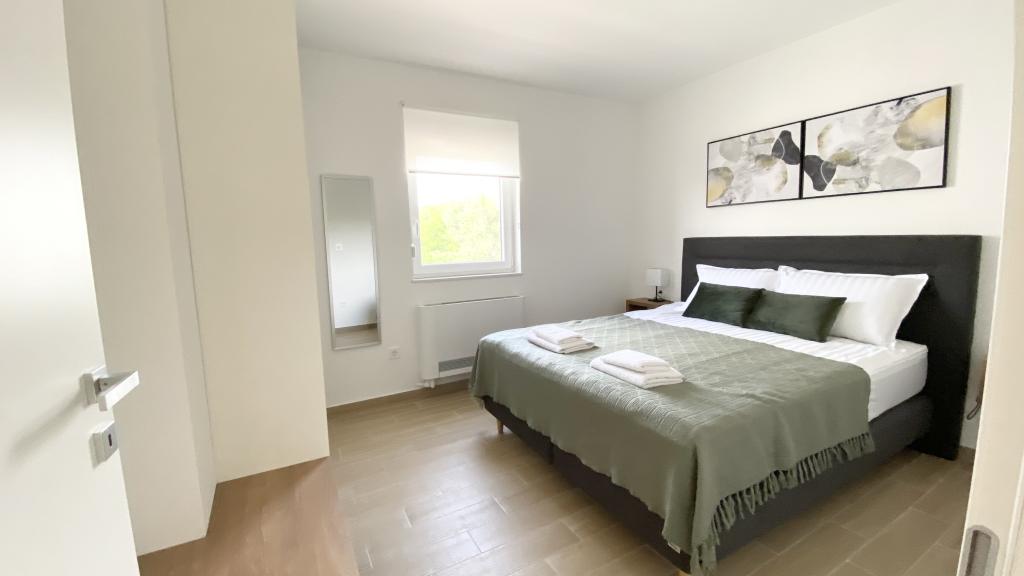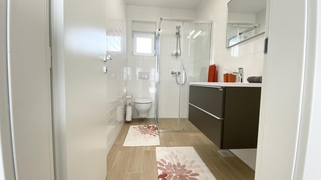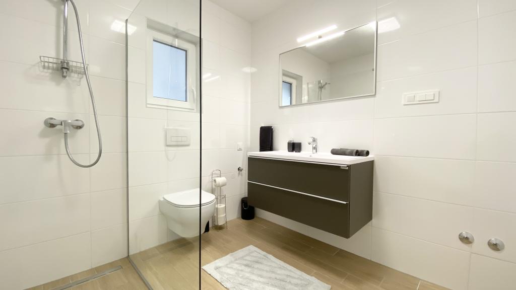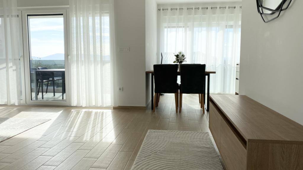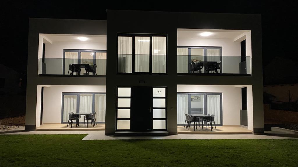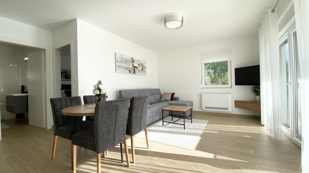 Villa Malina is a new apartment house located in a quiet part of the village. It has three modernly equipped apartments of 50, 55 and 60 m2 with separate entrances and secured parking spaces in the yard. Each apartment has a living room, bedroom, bathroom, kitchen and a covered terrace. In the living room there is a sofa bed that can be used as an extra bed for two people. The kitchen is equipped with dishes, kitchen towels, oven, microwave, refrigerator with freezer, kettle, electric stove, toaster and dishwasher. Additional equipment includes internet connection, air conditioning in every room, vacuum cleaner, washing machine, hairdryer and mosquito nets on all windows. A free baby cot is available on request. Guests have access to a shared terrace with barbecue and an outdoor shower. For stays of 10 days or more, a 10% discount is available.