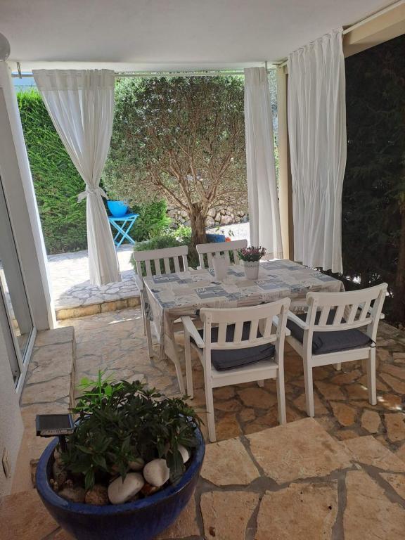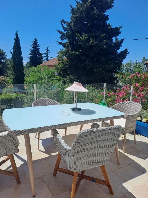 My family and I we were lucky that we chose this apartment in a quiet part of the town. Ideal for stays with children because of the large garden, terrace and proximity to the sea with a sandy beach. The apartment is very neat, clean, functional, and can use the washing machine which is very important to me. Modernly furnished with a lot of style. For the other side there is also a real Mediterranean feel ... stone barbecue on the terrace where the shade doing the old fig tree in the yard the olives and Mediterranean plants ... On the deck chairs under the fig everyone can relax. The hosts were too kind, simple, friendly. Oh, everything is perfect! Certainly we come back next year in this small romantic Mediterranean paradise. We can not wait!