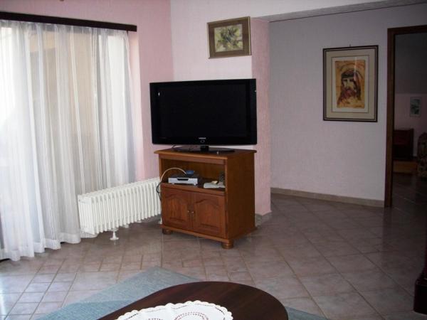 MALINSKA 50 meters from the beach, Milos apartments, furnished and equipped with air conditioning, wireless Internet, LCD satellite TV, fridge, gas stove, 2 + 2 electric, oven, bed linen, towels. Grill in the courtyard. Apartment 5 +2 on the floor 95m2 + 15m2 terrace partially covered with an awning and sea views, one double-sp. rooms, 1 triple sp. room. 2 bathrooms, nec. room 54 m2. two kaucha kitchen. Apartment 2 +2 on the floor (terrace) 40 m2 + 20 m2 terrace, sea views, one double bedroom, bathroom with toilet, nec. room with kitchen. Apartment 2 +2 (Small terrace) on the floor, 39m2 + terrace 10 m2, one double bedrooms and living. room with kitchen, bathroom with toilet. Apartment 4 +1 on the ground floor, 75 m2 + 20 m2 covered terrace with barbecue, 1 double sp. 1 triple room + sp. room, bathroom with toilet, suitable for the disabled.