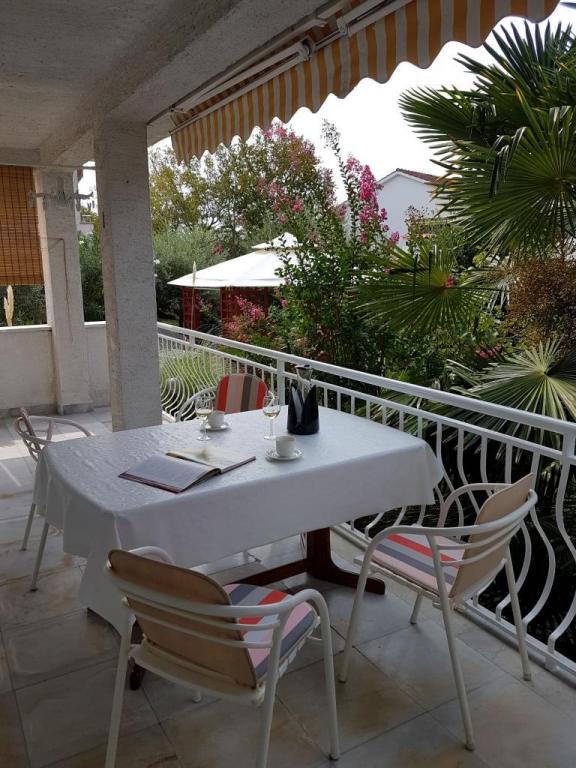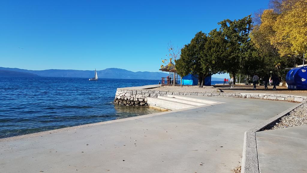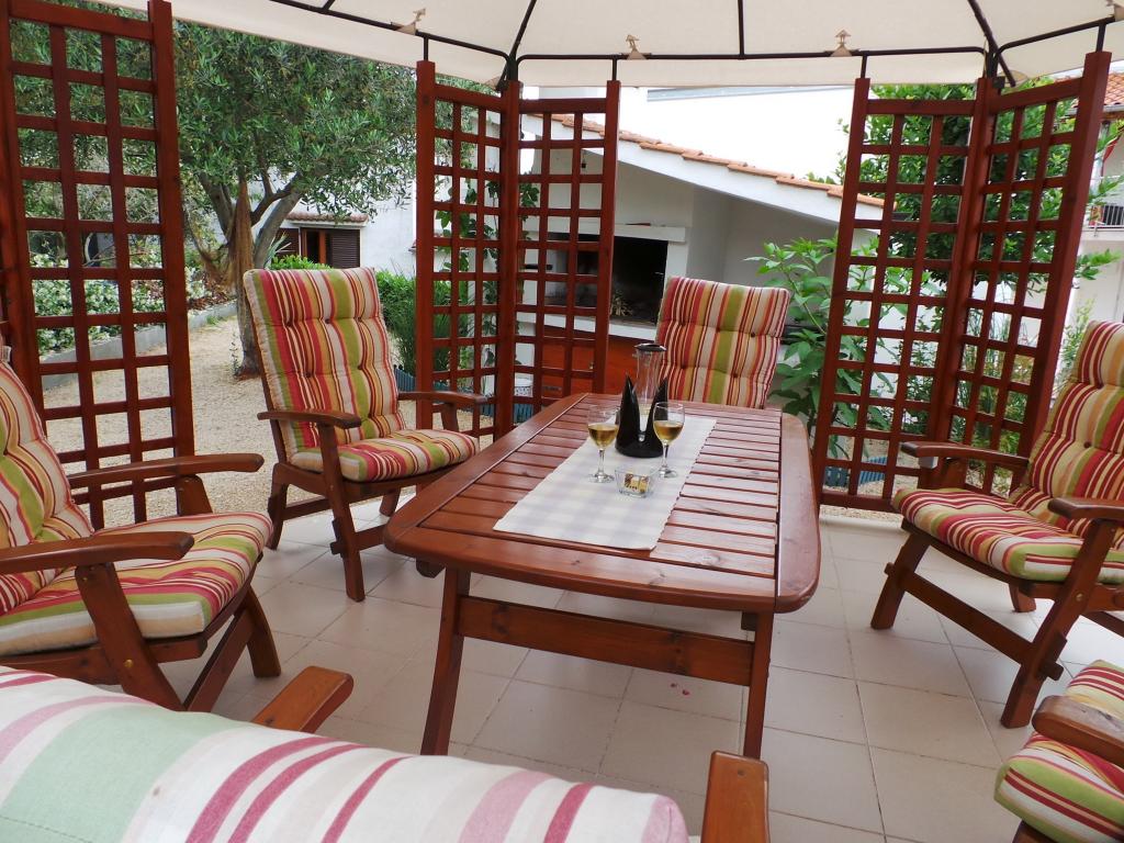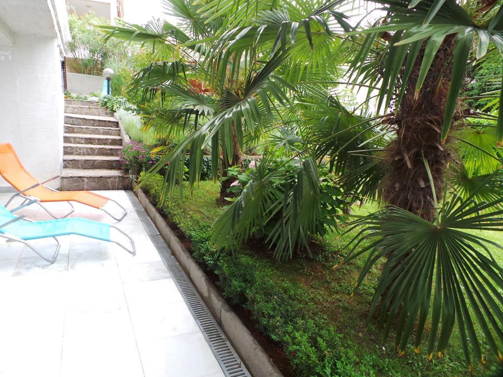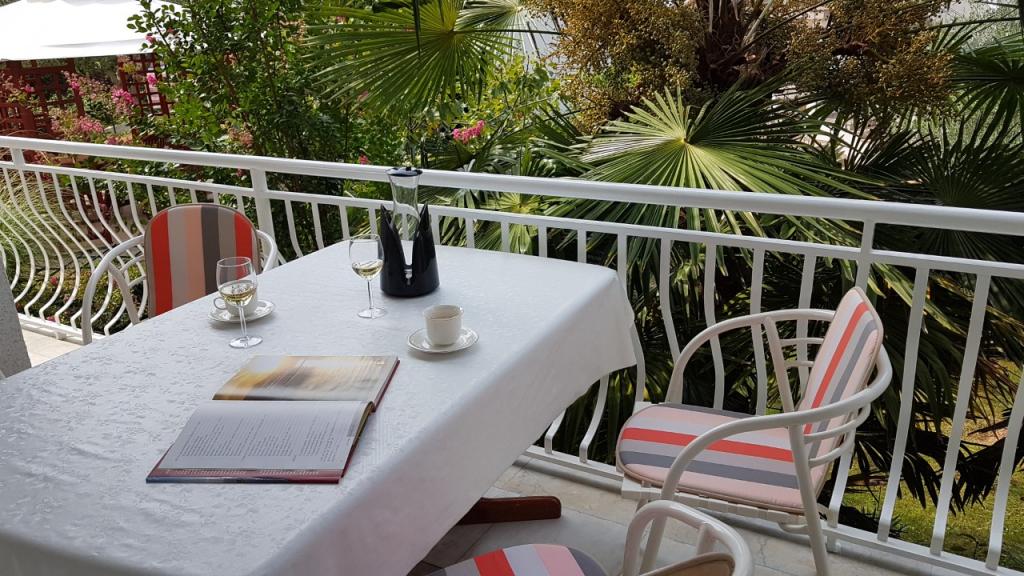View of the garden and pavilion where guests in the evening enjoy a romantic environment of discreet lighting and flowers with a glass of good wine and grilled delicacies. The smells of local fish specialties come from the nearby fish restaurant / 200 m from the apartment /. Additional facilities nearby: bowling, horse riding, various water sports, bike rental, boats, organized excursions, long and beautiful promenades are the possibilities provided by the place.