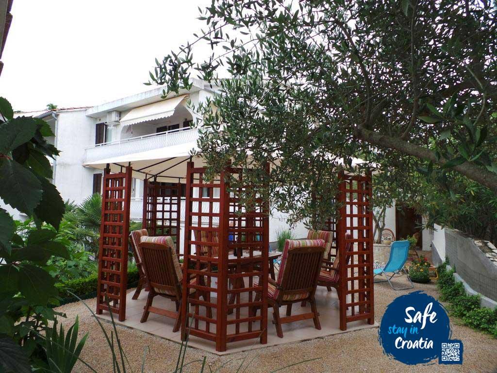 Apartments Schreng are located in a family house in a quiet part of Malinska surrounded by greenery. The place is ideal for your vacation because it offers you everything you need for a pleasant stay away from the noise. The house offers accommodation in two apartments. 1. with one bedroom with double bed and one comfortable apartment with three bedrooms. Each apartment has a separate entrance and parking space. Three bedroom apartment is located on the first floor and has a terrace of 20 m2 while the one bedroom apartment is located on the ground floor and has one spacious terrace of 20 m2. All apartments have: satellite TV, internet, air conditioning, and washing machine on request. In the spacious and beautifully landscaped garden there is a barbecue and gazebo all available to guests. The property is a 15-minute walk to the center and market, and the main waterfront with cafes and restaurants along the coast. Guests love it because it is located in the best rated area in Malinska. It is suitable for larger groups of guests. Due to the current situation with the COVID-19 pandemic, we note that each apartment has completely separate entrances and