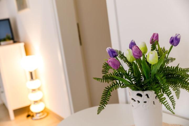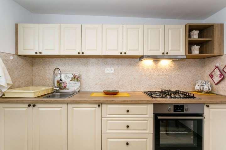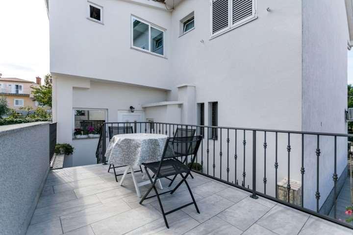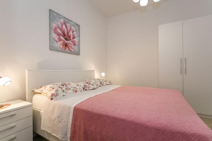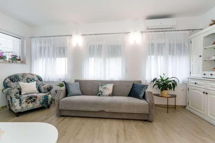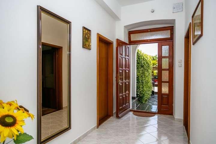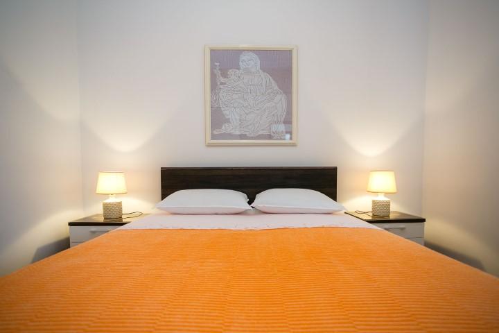The apartments are located in a short street, which separates from the main street 50 meters from the very beginning, which leads to the Malim hotel. The house has one floor, where my husband and I live, and on the ground floor there are 2 apartments, each with its own separate entrance with spacious terraces. The apartments have 1 double bedroom and a sofa in the living room that, if necessary, can be pulled out as an extra bed, which is visible in the photos, among other things. The apartments have an iron with an ironing board and a hairdryer. The street below us is called Obala and is the coast with beaches that stretch from below the hotel all the way to the town center.