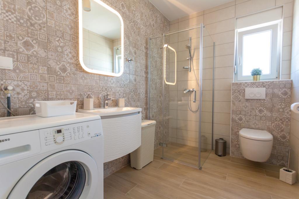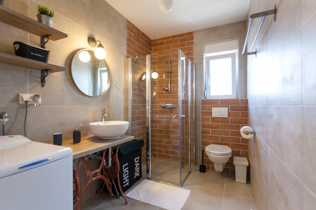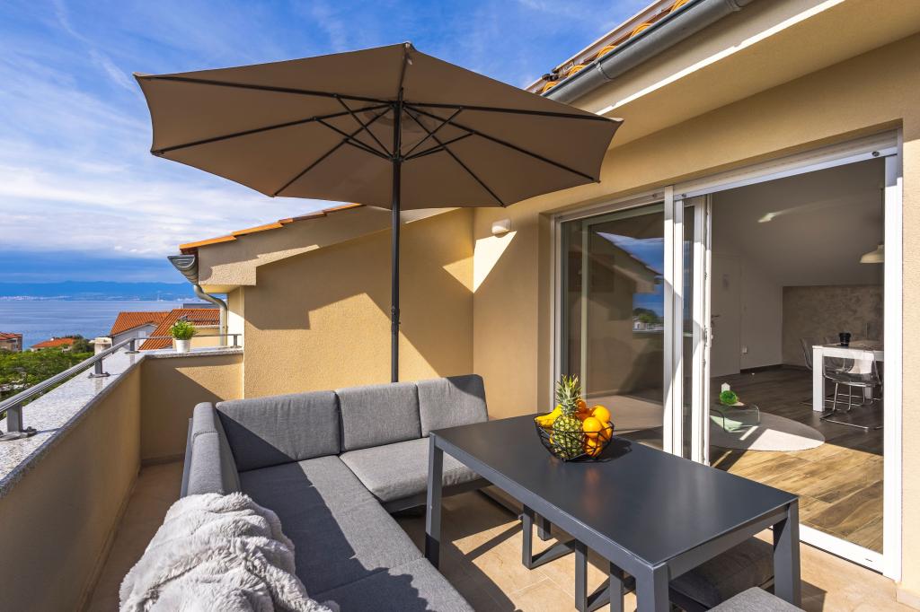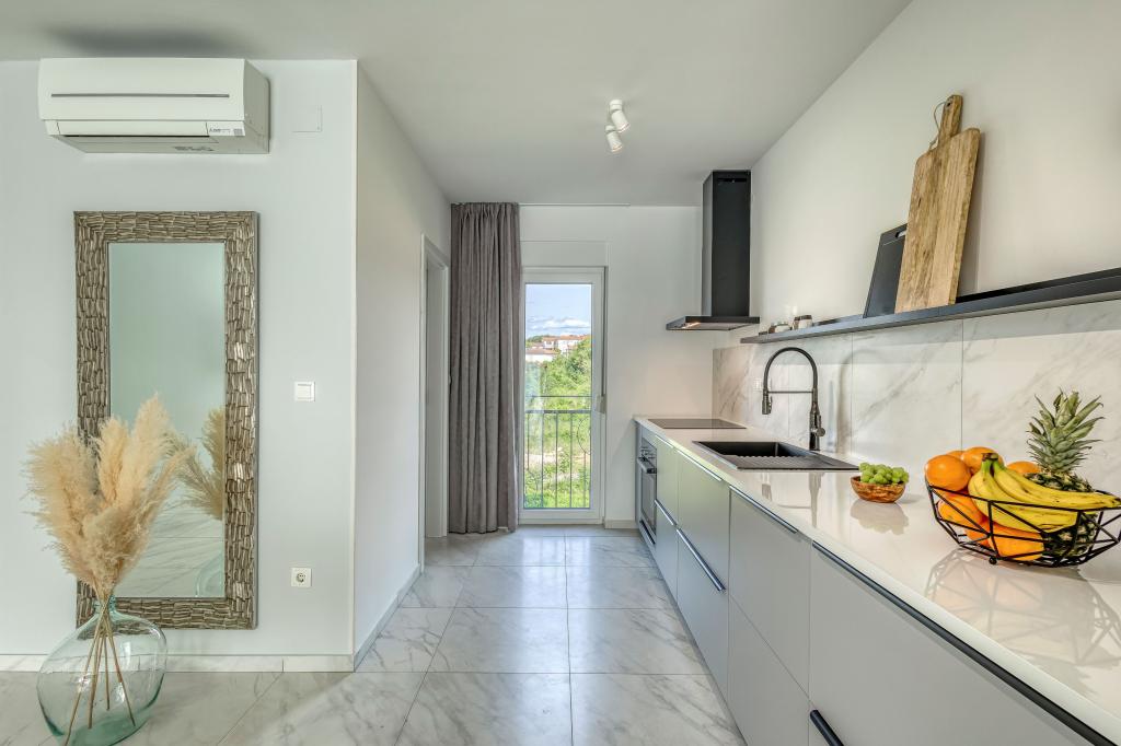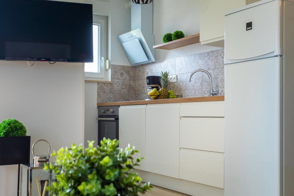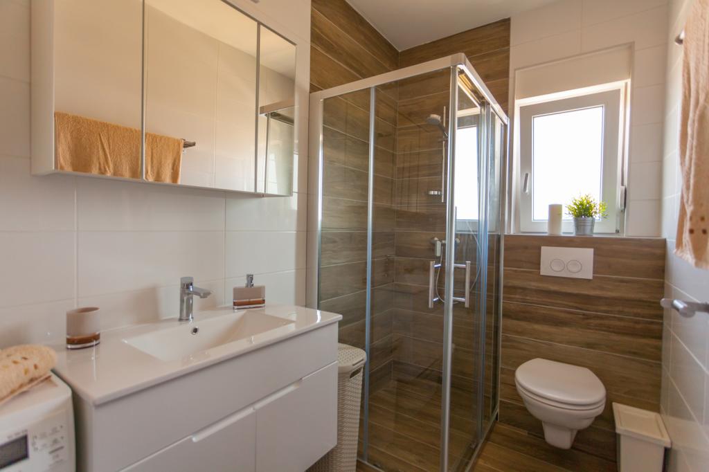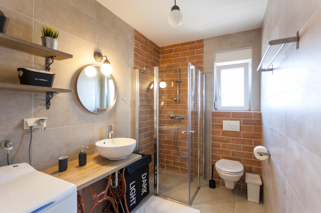 Villa FE offers modern and elegantly decorated apartments with a beautiful sea view, located in a quiet and attractive part of Malinska - Rova, just 300 meters from the beach. The villa consists of five modernly equipped apartments, one in the basement, two on the first floor and two on the second floor. The apartments on the upper floors have a private balcony ideal for relaxing with a view of the Adriatic Sea. The interior is decorated in a contemporary style with carefully selected furniture that ensures a comfortable and pleasant stay, while guests have access to air conditioning in common areas and bedrooms, a TV and fast and free WiFi throughout the property. Thanks to its excellent location near beaches, restaurants and local amenities, Villa FE is the perfect choice for a romantic vacation, family vacation or relaxing getaway by the sea.