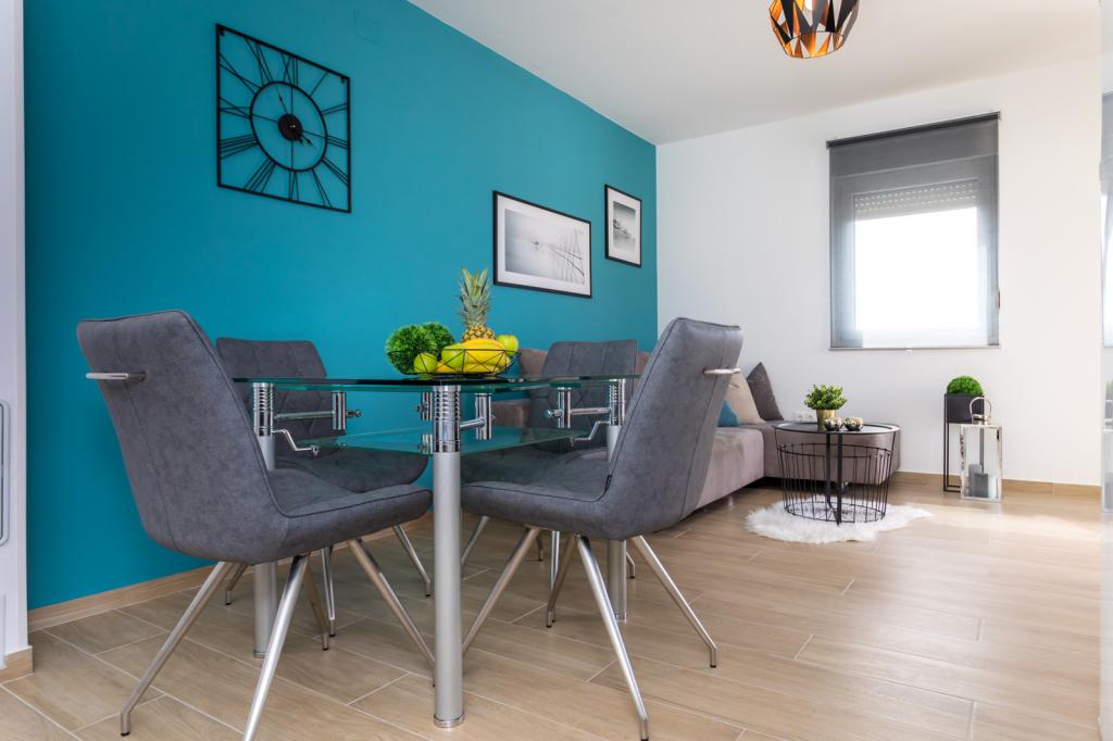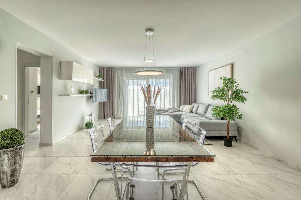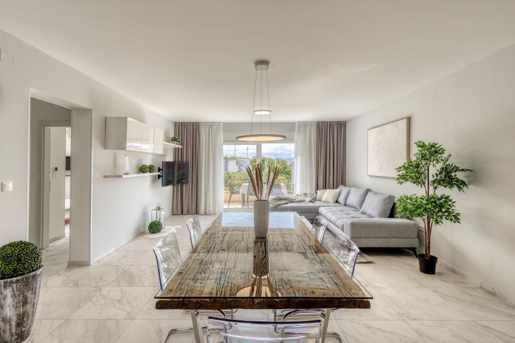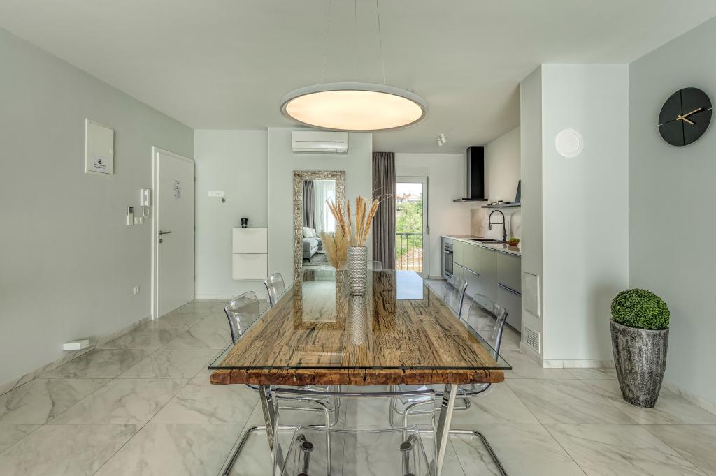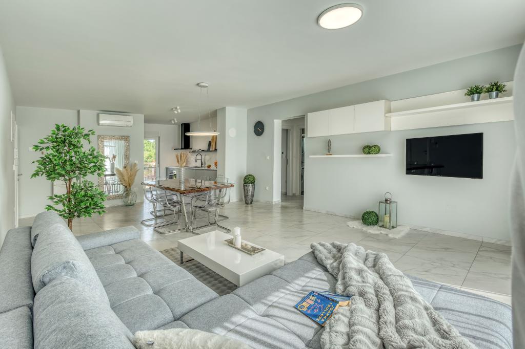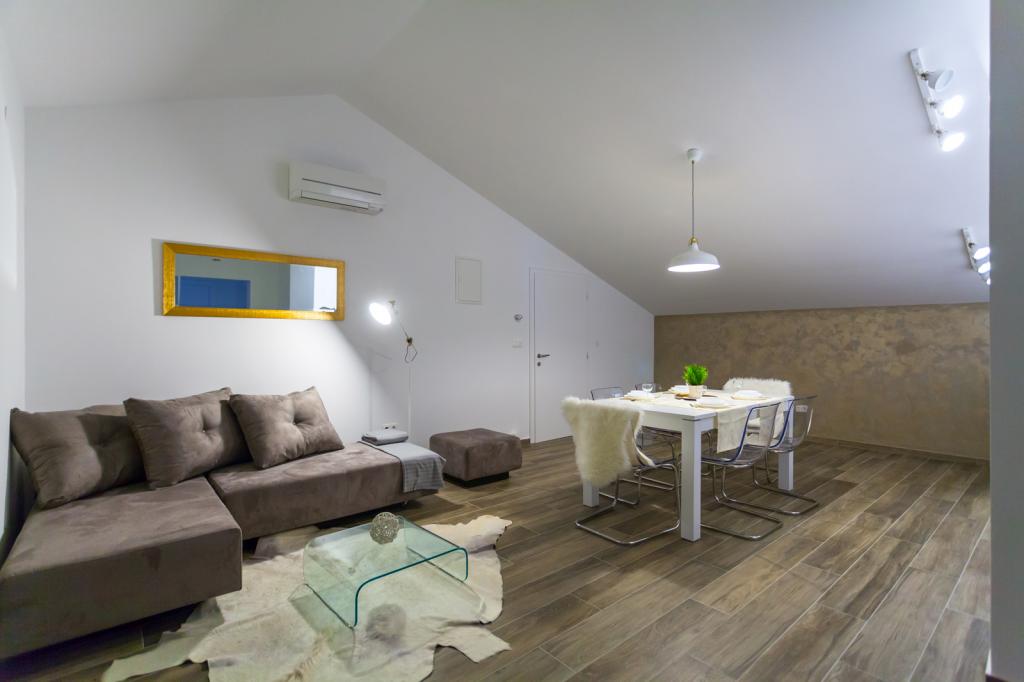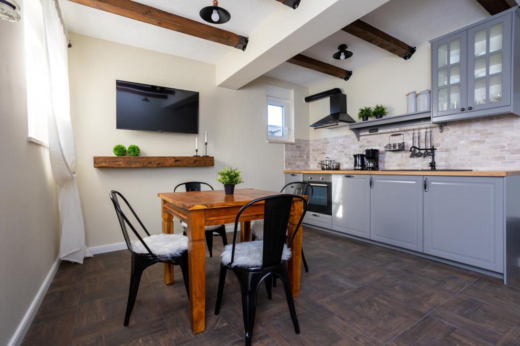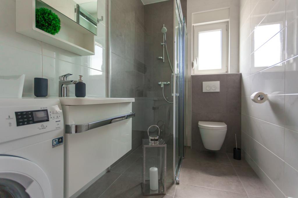 Villa FE offers modern and elegantly decorated apartments with a beautiful sea view, located in a quiet and attractive part of Malinska - Rova, just 300 meters from the beach. The villa consists of five modernly equipped apartments, one in the basement, two on the first floor and two on the second floor. The apartments on the upper floors have a private balcony ideal for relaxing with a view of the Adriatic Sea. The interior is decorated in a contemporary style with carefully selected furniture that ensures a comfortable and pleasant stay, while guests have access to air conditioning in common areas and bedrooms, a TV and fast and free WiFi throughout the property. Thanks to its excellent location near beaches, restaurants and local amenities, Villa FE is the perfect choice for a romantic vacation, family vacation or relaxing getaway by the sea.