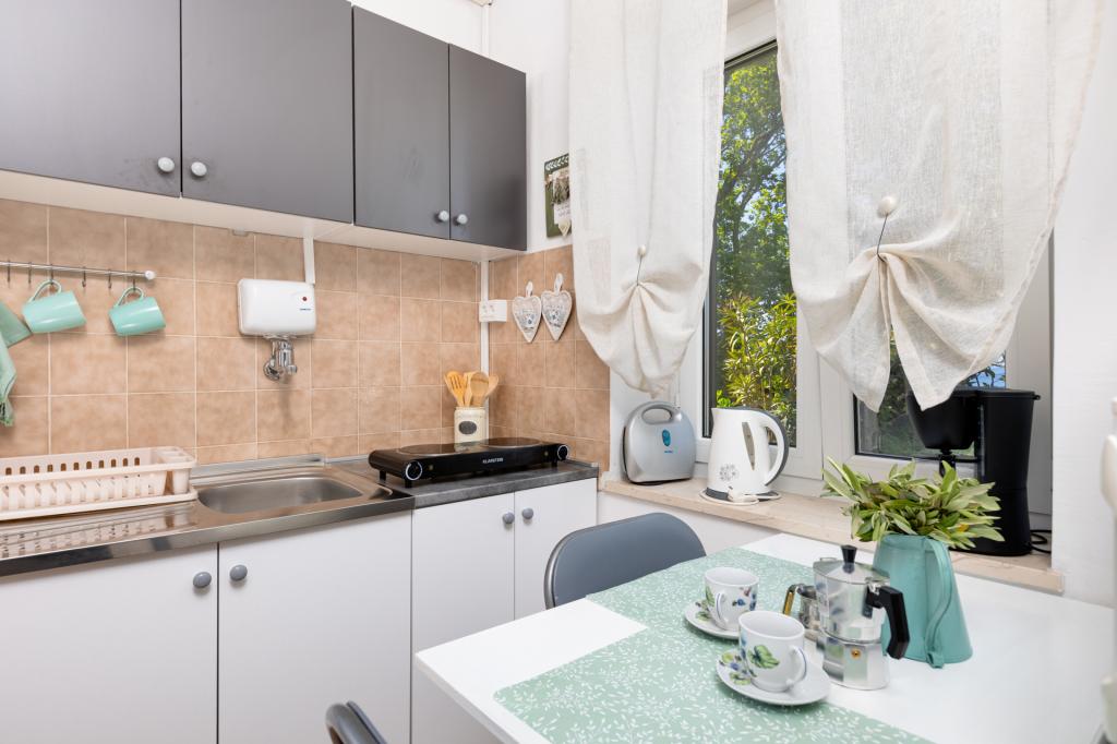 We stayed in this apartment for 2 weeks in June 2025. We were greeted by an extremely neat and clean apartment. Although it is a studio, a door separates the sleeping area from the kitchen area, which was important to us when preparing meals. The position of the apartment is good because of the air circulation, and we only turned on the air conditioner once when the outside temperatures were extremely high. For me, the biggest advantage is the terrace with a view. The hosts are to be commended, very helpful, they will provide anything you need! The beach is close, it is clean, but the disadvantage is that there is no shade. Also worth noting is that there is an uphill walk when you return from the beach to the apartment. Malinska is also nearby, which can be reached by a seaside promenade in 30 minutes, and which has more amenities (restaurants, events, cafes)