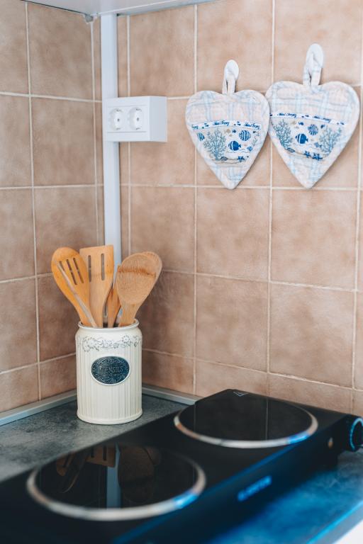 Pleasant apartment in a beautiful location, just a few steps from the water. Modernly equipped, cozy apartment with a terrace overlooking the sea and a beautiful, well-kept garden. Possibility of parking at the house, grilling or sunbathing on deckchairs. Owners very accommodating, communicative. A pleasant place for an active holiday and relaxation. I will be very happy to come back here.