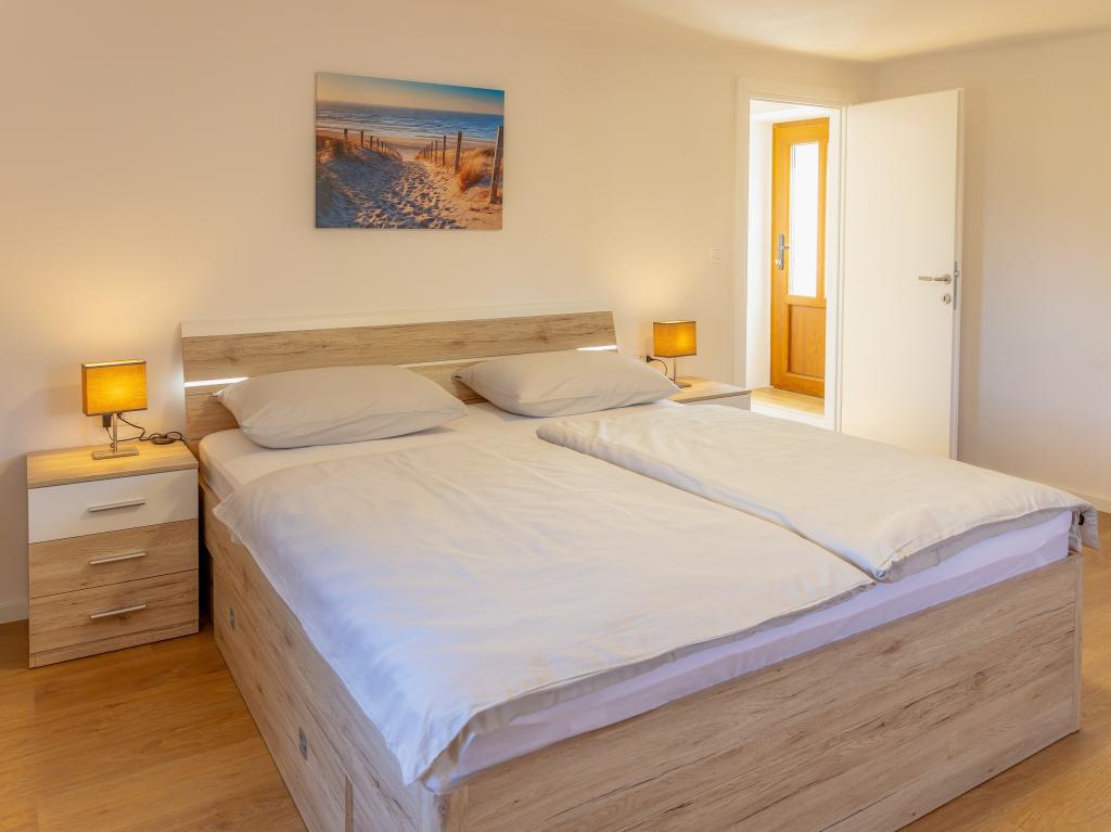Newly renovated holiday home with sea views. It can accommodate 6 people in 4 bedrooms. The ground floor is dominated by a large open living room, dining room and fully equipped kitchen. On the same floor there is a bedroom with a double bed and 2 bathrooms. Stairs lead to the upper floor where there are 3 bedrooms, one bedroom with a double bed and 2 bedrooms with a single bed. Outside there is a barbecue with an additional table and chairs. There is parking for 2 cars in the yard. There is a children's playground nearby.