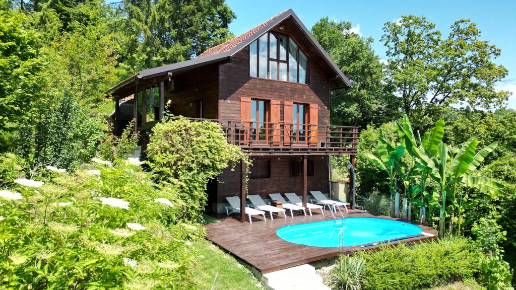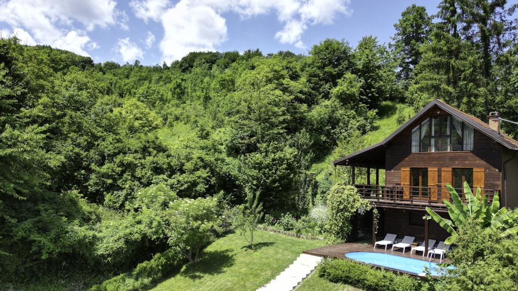 FeelGood holiday house offers a holiday in nature only 30 minutes from the center of Zagreb. It is surrounded by forest, but completely fenced. The fenced plot is ideal for holidays with pets, with a pet-friendly facility. The pool is available from April to August. A barbecue, a kettle and a fire pit are available. Skewers can be arranged additionally. In the winter months, the house offers complete comfort thanks to underfloor heating, air conditioning with the possibility of heating and a classic wood-burning fireplace for a complete atmosphere. The house is of classic construction, and the wooden facade is ventilated for the feeling of a cabin. An asphalted road leads to the house, parking is included in the building with a driveway that is under video surveillance for additional security. Classic WiFi is within the facility, and from the summer of 2023, the infrastructure of the optical network is being built with EU funds, and connection to it can be expected.