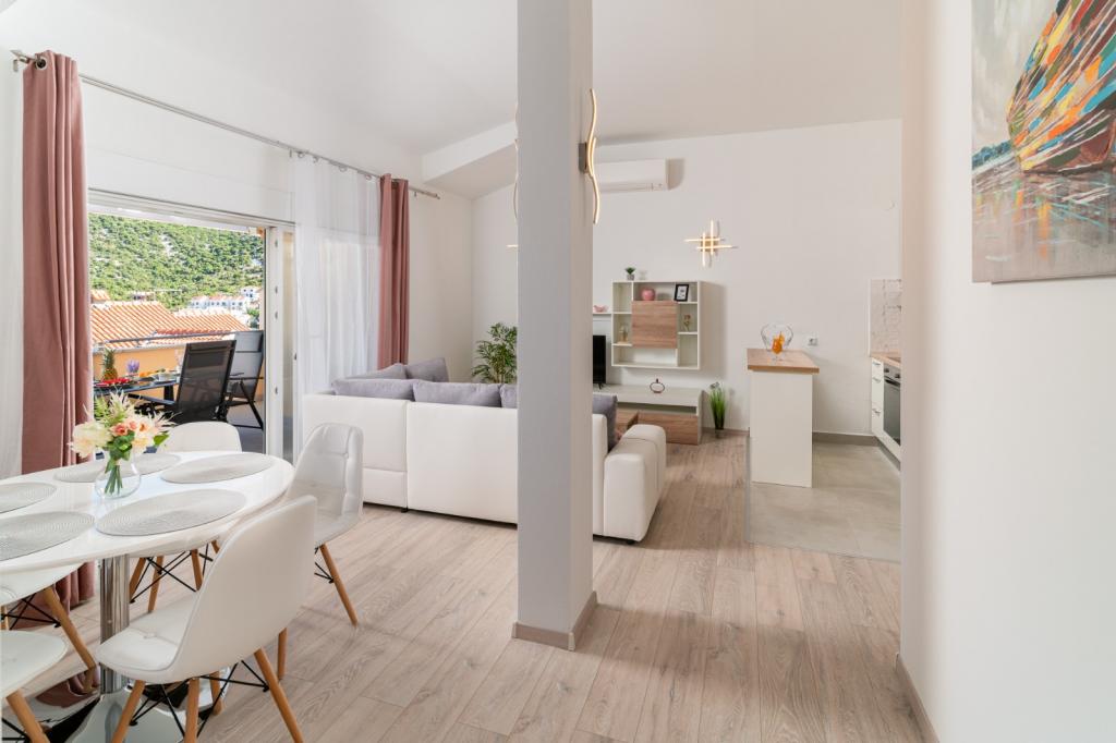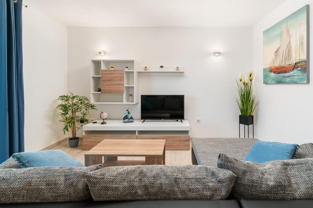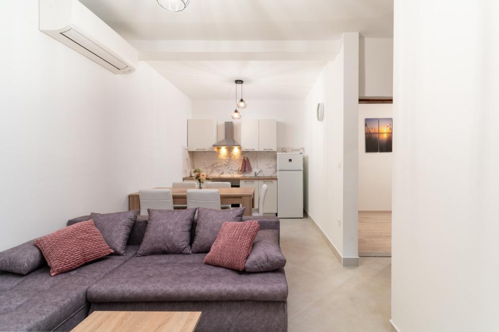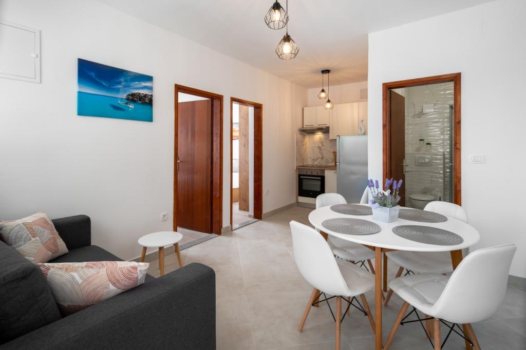 All praise to the hosts, very kind The apartment is beautiful everything is new neat and comfortable The beach is across the street, no crowds extra who loves peace It was beautiful for us and I recommend it to everyone with children who likes smaller and quieter places. We also used the pool a lot, the kids enjoyed it, there are no rules just relaxed and enjoyable