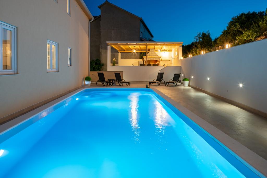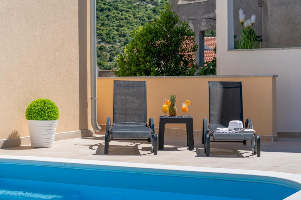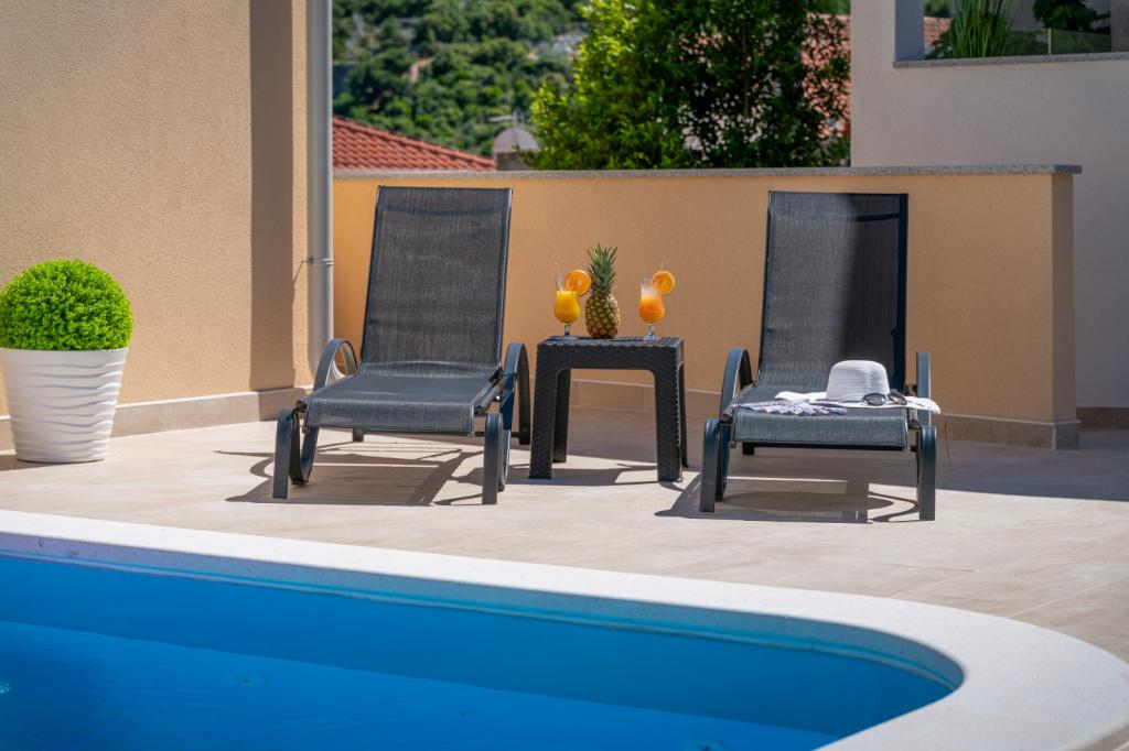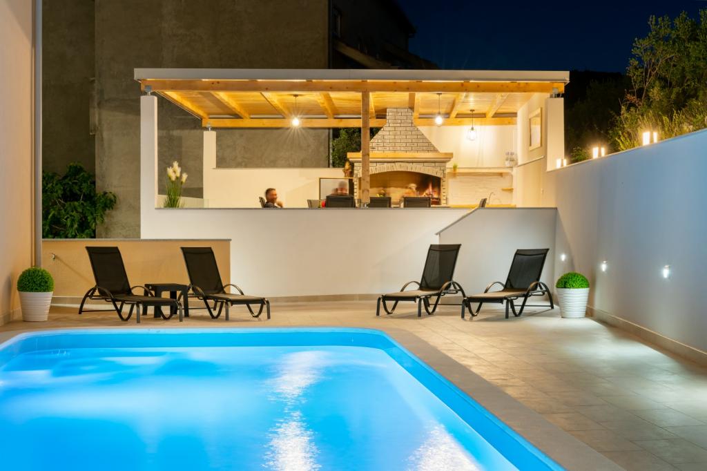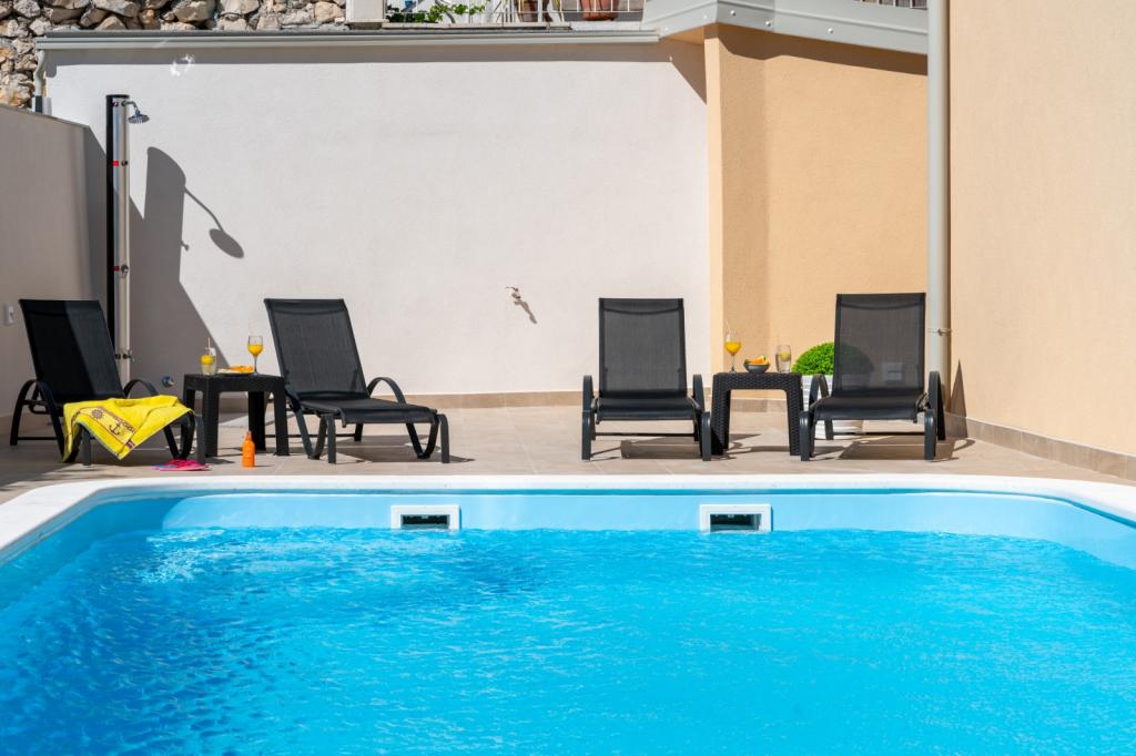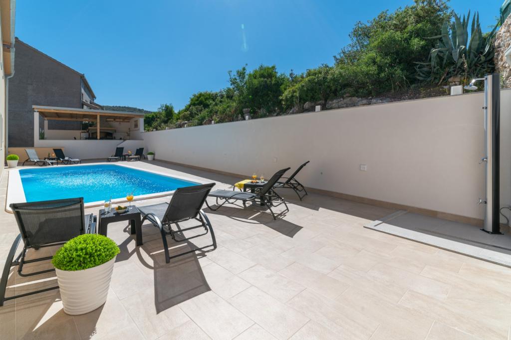 Probably one of the best accommodations in CRO. Everything is very well-maintained, fully equipped, modern, and air-conditioned. There's a terrace with a fully equipped barbecue by the pool. There are sun loungers by the pool, a shower, and a toilet. The views from the villa are fantastic. The owner, Marina, is a wonderful and warm person. She was very helpful and even welcomed us with local meats, cheese, and bread. The beach (pebble beach) is literally two minutes away. I highly recommend it! We'll gladly return.