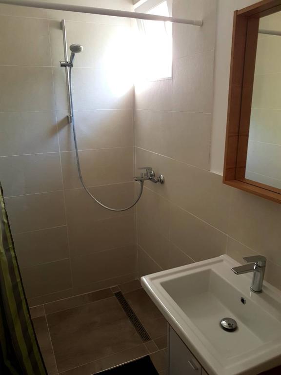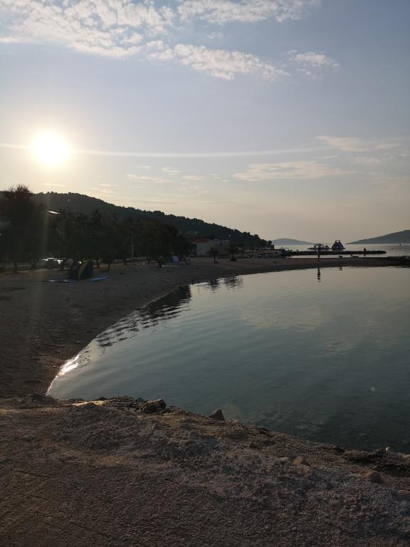 Excellent location by the sea with a suitable beach for children and adults. An excellent apartment in the shade, with a beautiful terrace, a modern, fully equipped kitchen and a bathroom with a spacious shower cabin. An excellent owner who also provided tasty surprises (slices, drinks, baked fish). I definitely recommend it.
