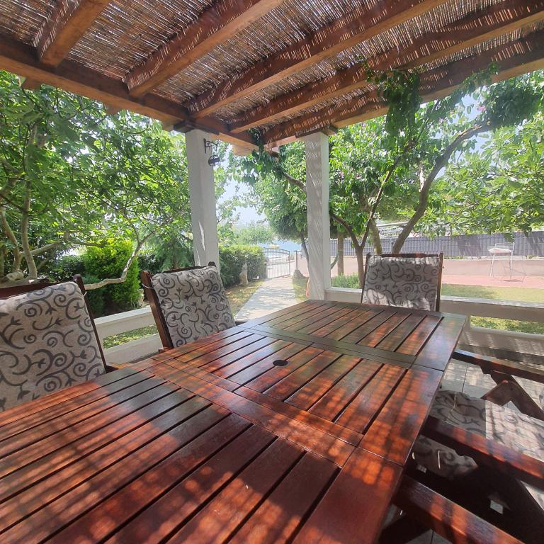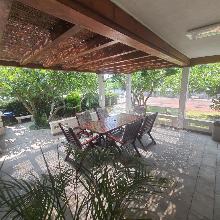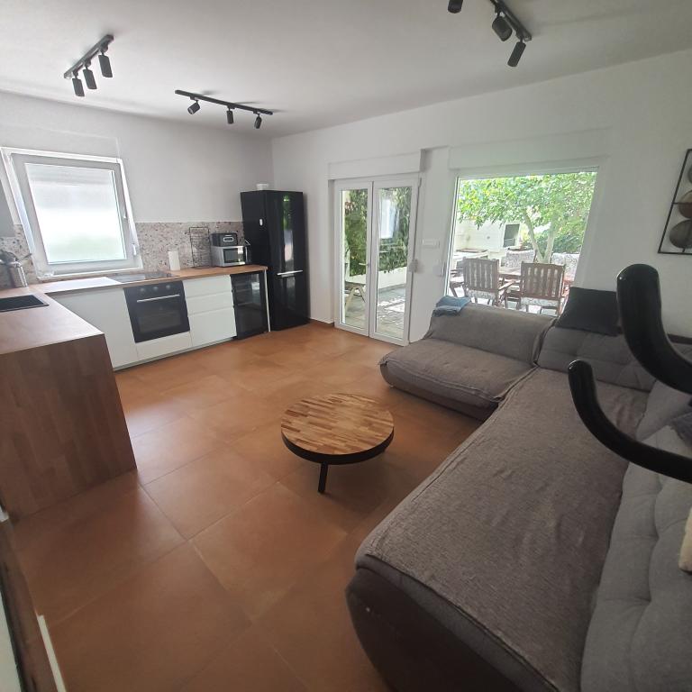 The accommodation and location of the apartment are excellent! Everything we needed for the first hand was waiting for us in the accommodation, which made it a lot easier because we came with small children. We were welcomed by a very nice owner. Location right on the beach, quiet, no traffic, ideal for children. There is enough shade in the yard, an outdoor kitchen and everything you need to prepare food. The apartment is nicely decorated, everything is new and clean. We have absolutely no complaints. One day we will come back again. Rating 10/10!