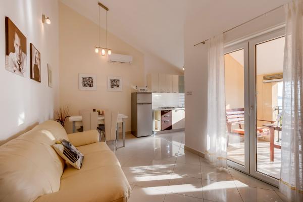 All three apartments are modernly equipped, air-conditioned, have free Wi-Fi, satellite TV, are located approximately 80m from the beach, have their own terraces and parking spaces. The beaches are pebbly and you will always find the ideal place for yourself.
