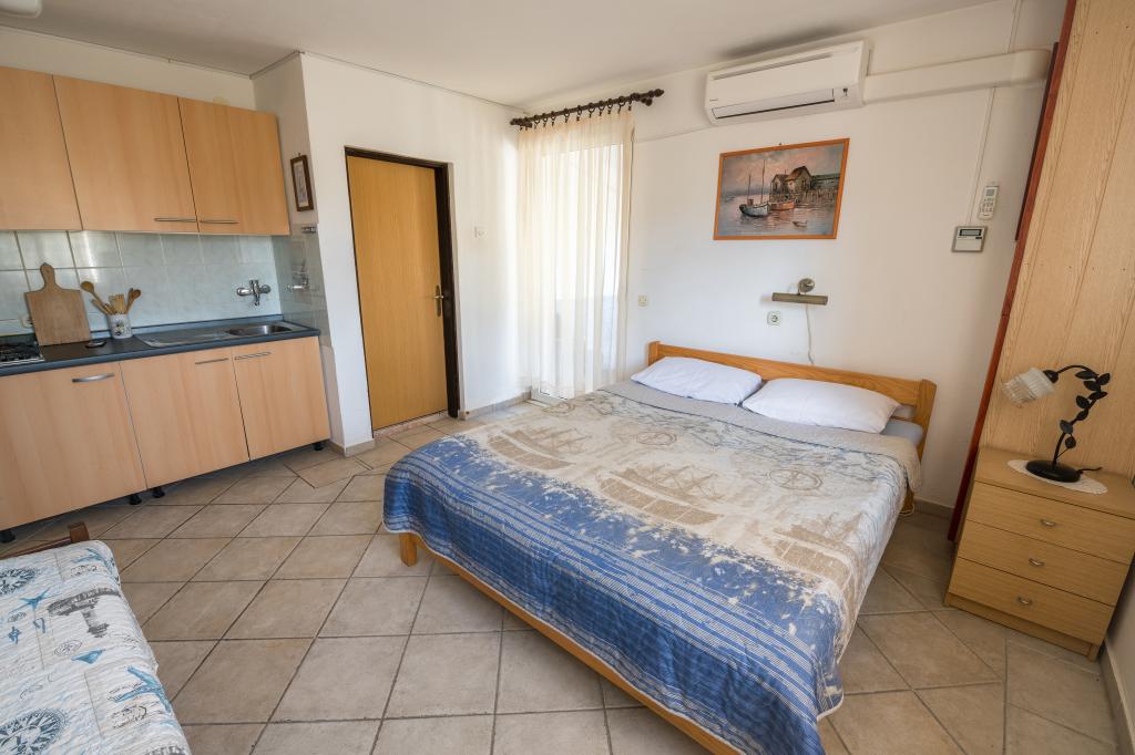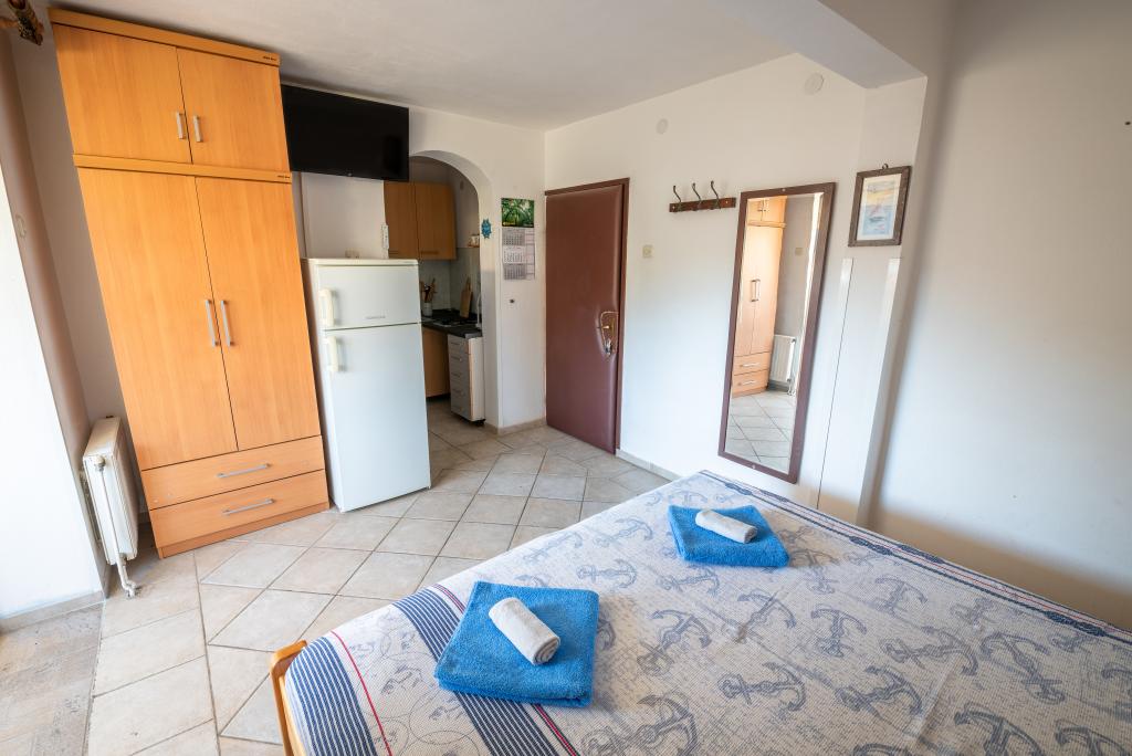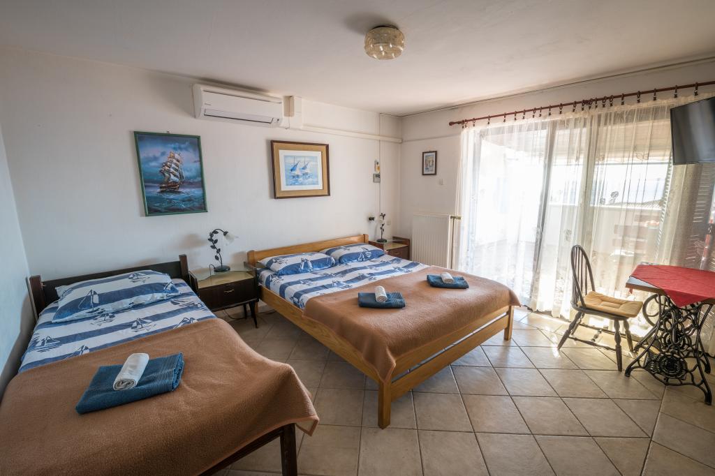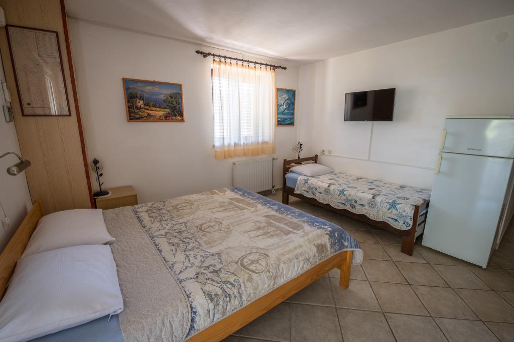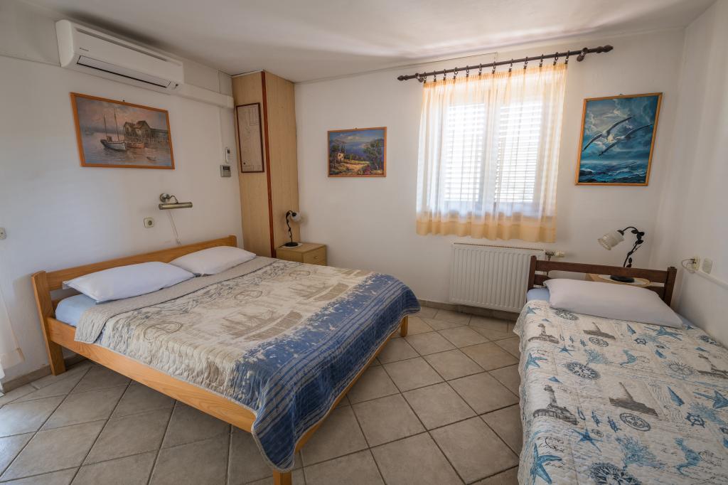 The town of Miholašćica traces its roots back to ancient Roman times. It is located on the tamest part of the Cres coast, next to a spacious bay open to the southwest. The beautifully landscaped town of Miholašćica and the neighboring town of Martinšćica with lots of Mediterranean vegetation are oriented towards family and camping tourism. Today, Miholašćica is a tourist place where, with a view of the island of Žeča, you will avoid the crowds and find your vacation in a peaceful environment. In addition to beautiful beaches, untouched nature offers great opportunities for a quality and active stay and vacation. Apartments Villa Goga are located in the very center of Miholašćica, only 5 minutes' walk from the beach. In the district of 300 m or 10 minutes walk, there are 2 restaurants, a supermarket and a tourist agency. The pebbly natural beach and clear sea provide an unforgettable experience for your little ones, and an irreplaceable vacation for adults. There is a bar right on the beach where you can cool off with a cold drink or entertain the children with ice cream from the wide selection.