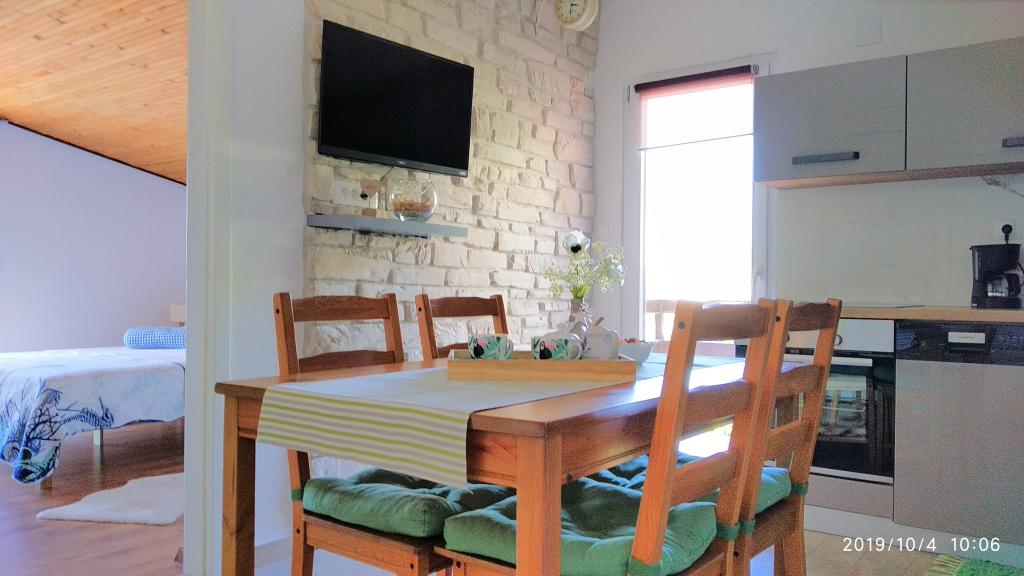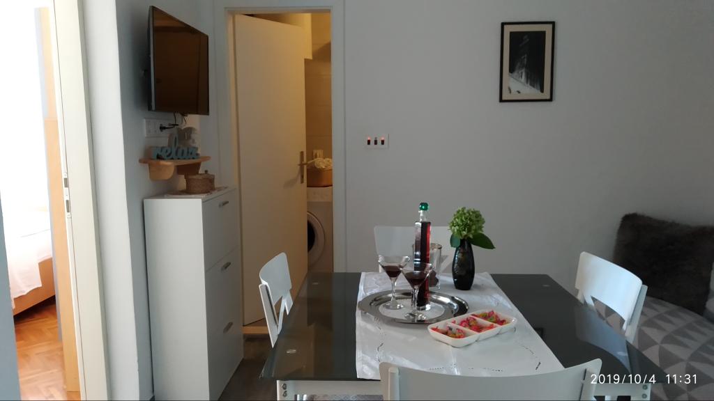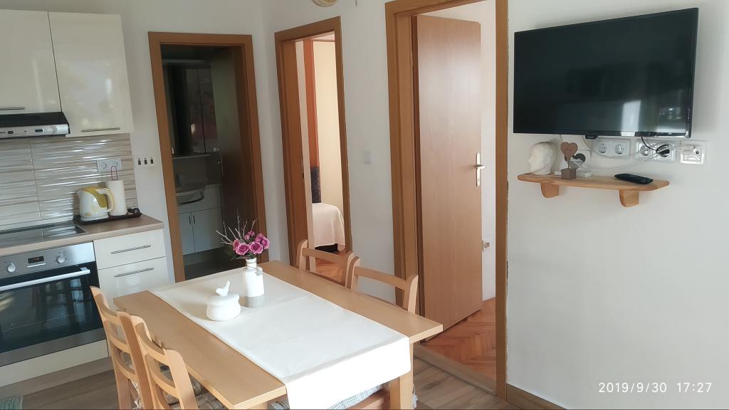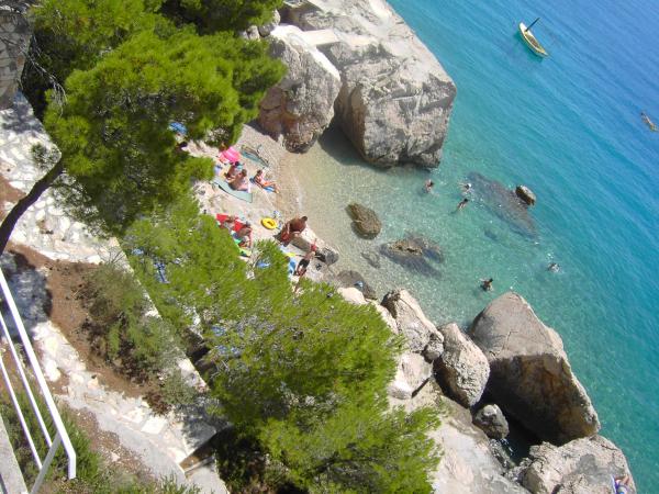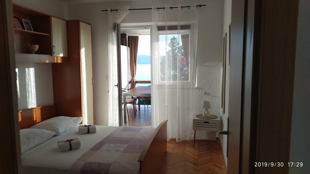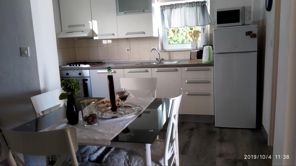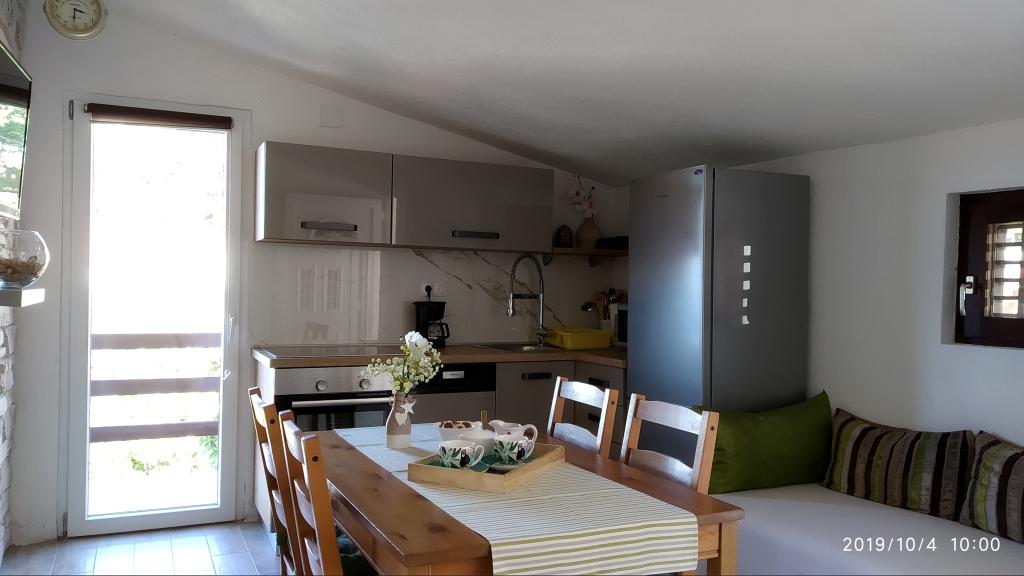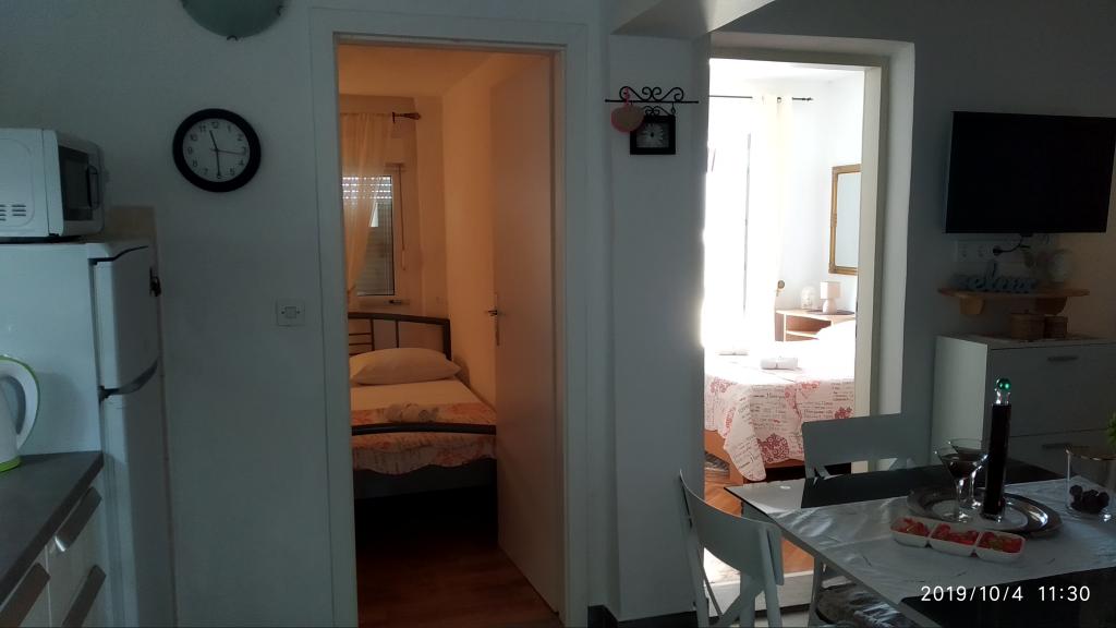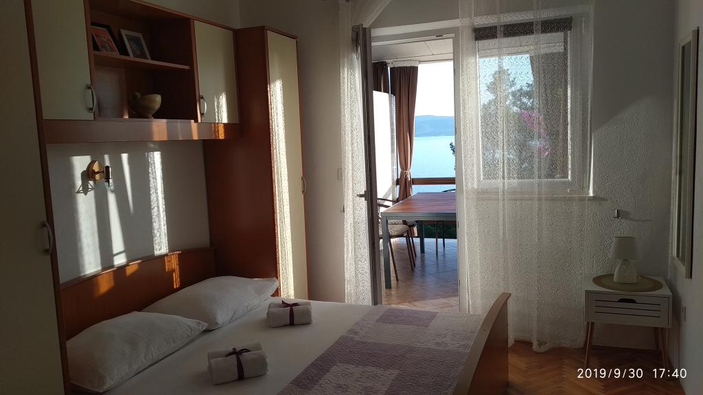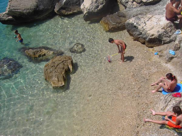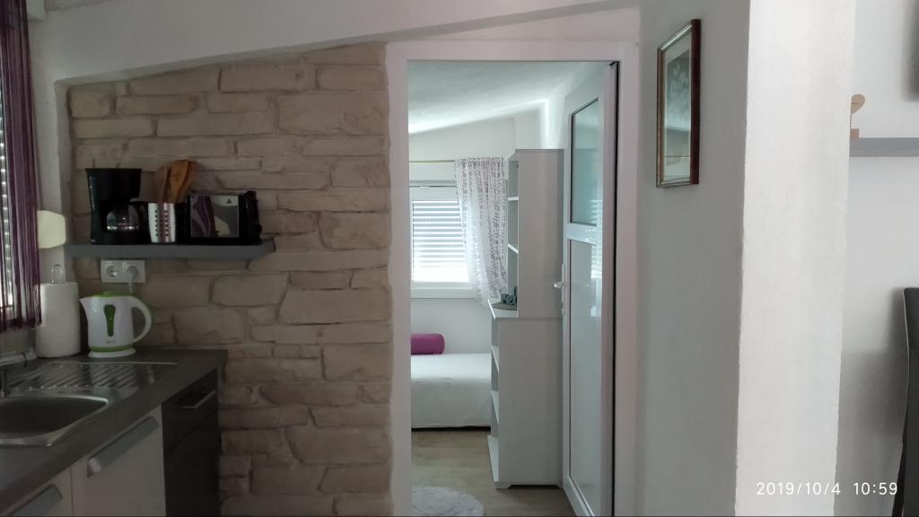 Apartment was great. We were there from 14.8 to 21.8.2018. There was nothing wrong. The hosts had an open ear for everything. The sea was the most beautiful thing I have ever been to. And I've been around a lot in Croatia. The water was so clear and clean. Just a dream. The children can jump from different heights of rocks. But you have to be aware that you have 150 stairs to the beach. The way to the apartment is accordingly exhausting. The only good thing is that the climb is in the shade. For families with small children the place is nothing. On the beach, the landlord had a chamber where you could deposit his things. That was very convenient. There was no cafe or toilet on the beach. The apartments are located on a very steep and narrow street. No problem for good drivers and strong cars. The parking in front of the house are very good. There is a shop on the main street above. We had both apartments upstairs. Both had large balconies. What I personally regretted that you could not remove the separation on the balcony. Otherwise we would have had a common huge balcony. We could still eat together. Outside there are also seating. An upstairs apartment has a washing machine. On some windows there are mosquito nets. Unfortunately, our bedroom had no blackout possibilities. The view of the apartments was fantastic.