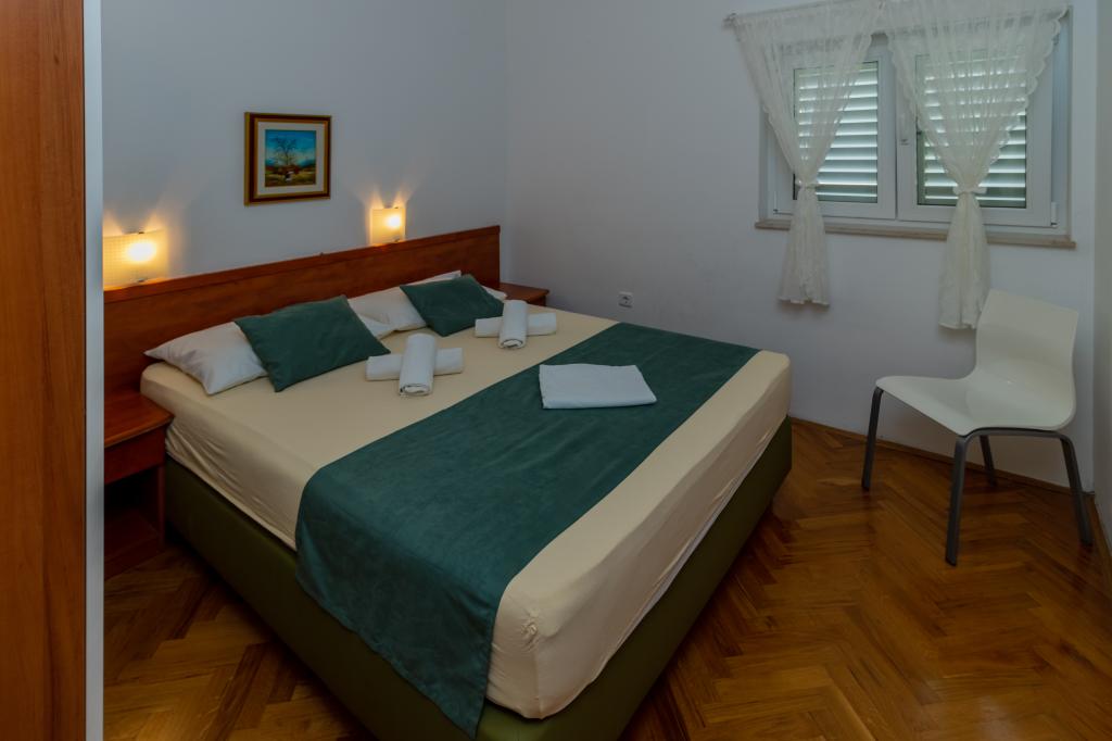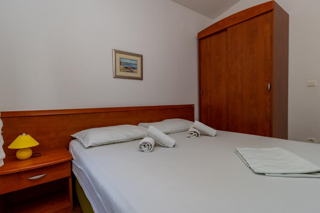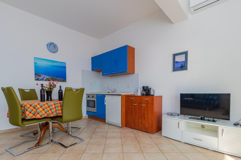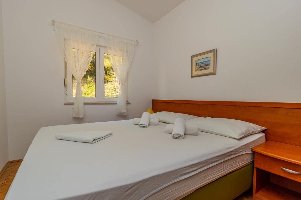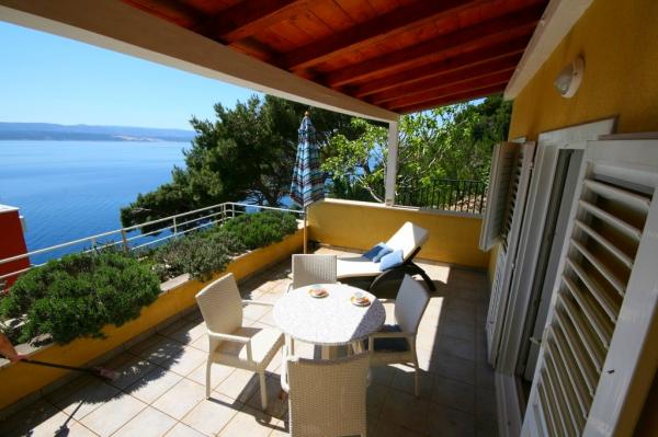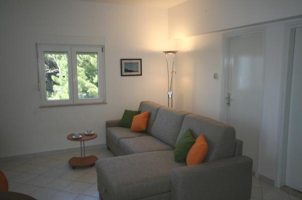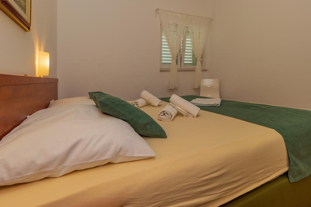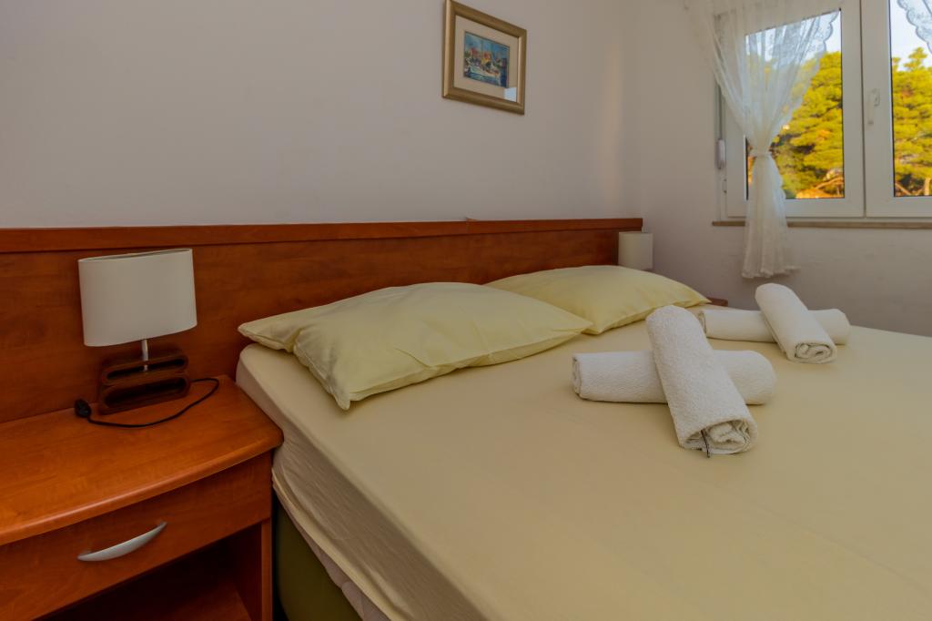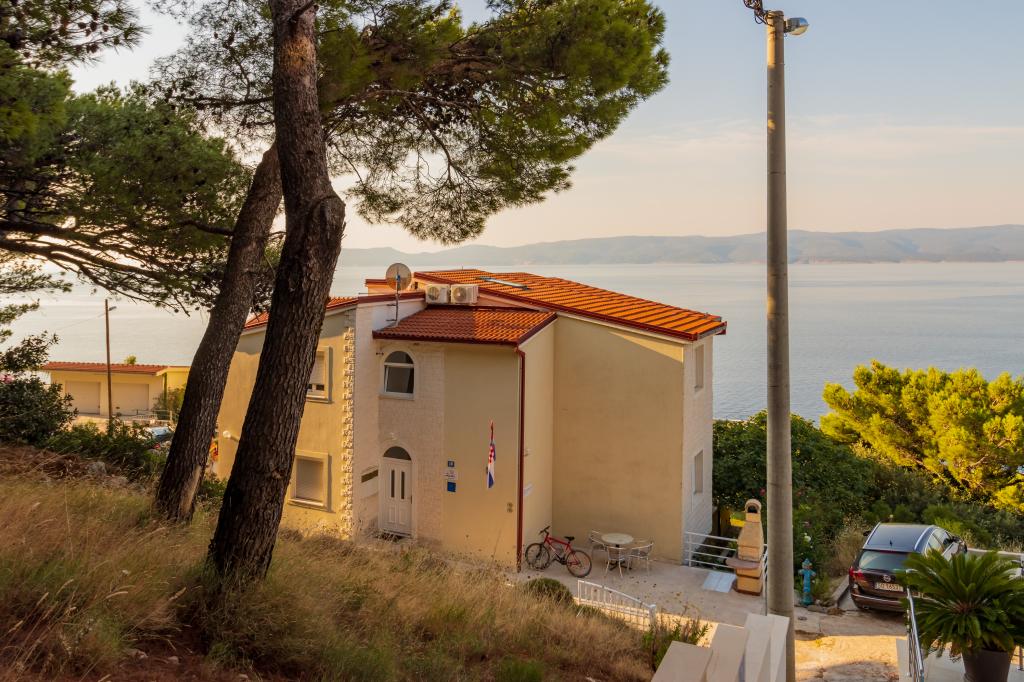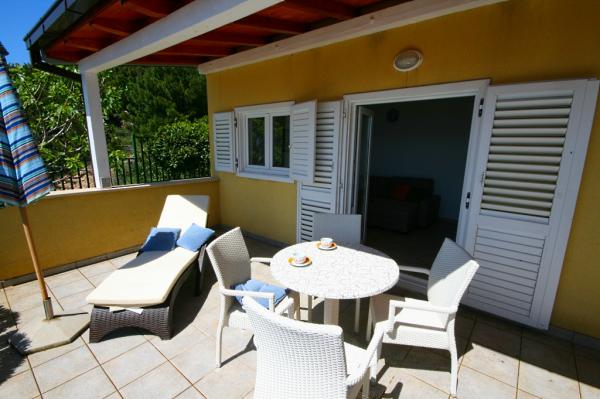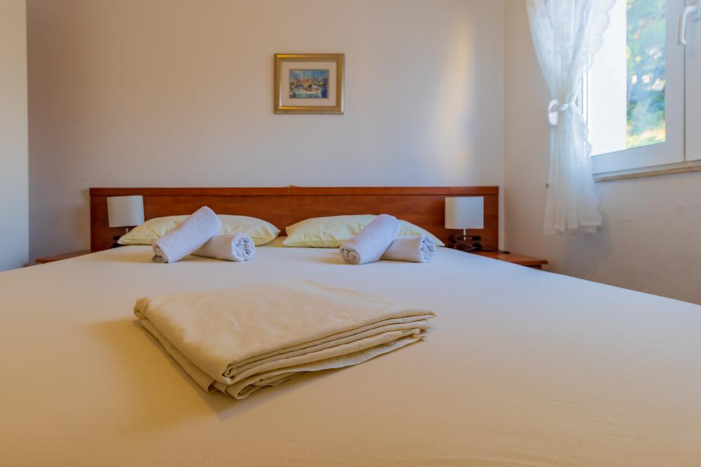 Villa Mandolina is located right above the beach, on the edge of a quiet bay, and all apartments have a terrace with a beautiful view of the sea and nearby islands. Each has a modernly equipped kitchen, bathroom, free WIFI Internet, SAT-TV, air conditioning, shower, towels and linen, living room with sofa bed and dining room. The villa has three 4 types of apartments and prices also vary depending on the size and location in the villa. As our guest, you use the beautiful beach (grill on the beach and at the villa, two deck chairs per apartment free of charge until the end of your stay in the villa, umbrellas, shower on the beach) and parking with video surveillance, all for free!! The beach can be reached by stairs directly from the villa.
