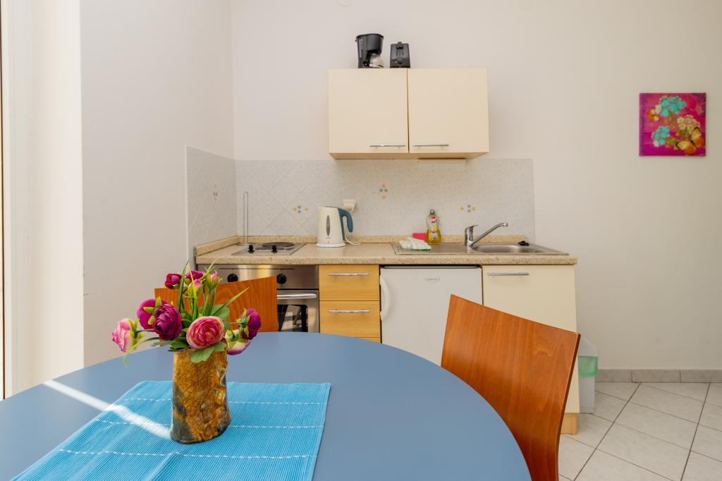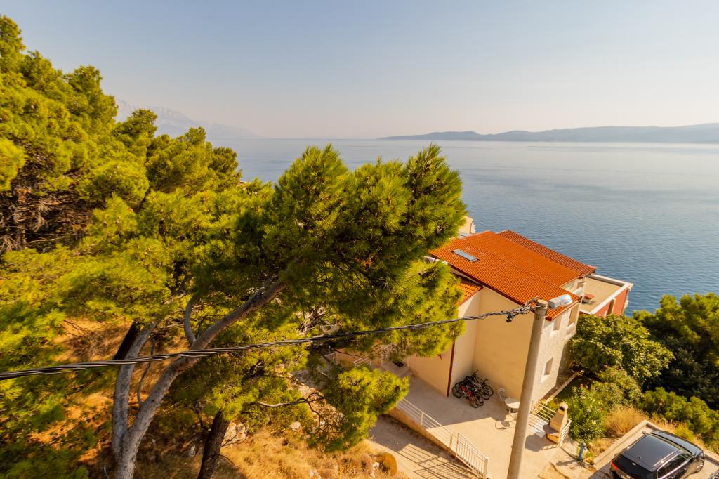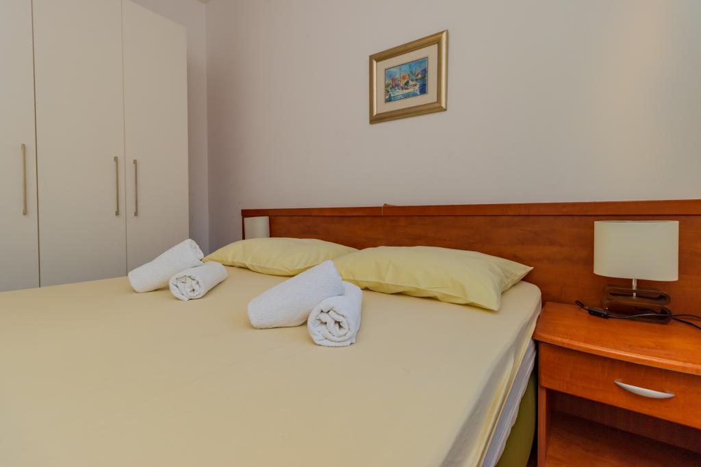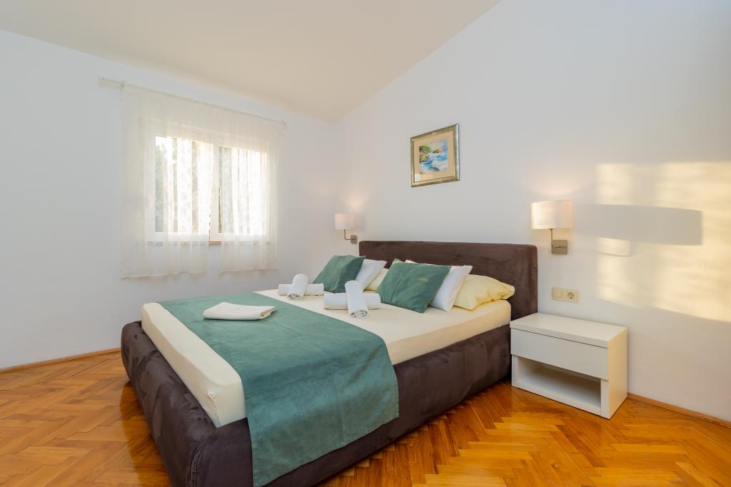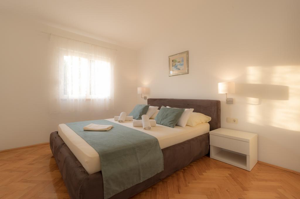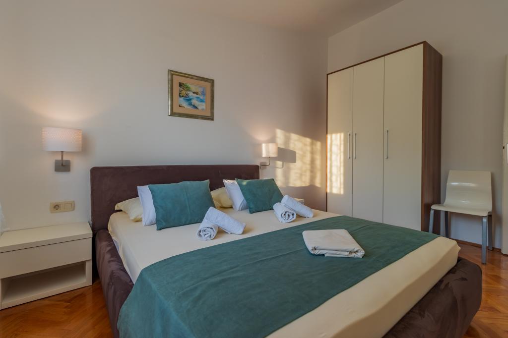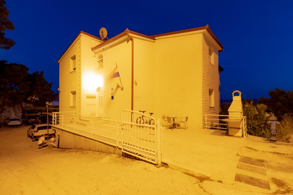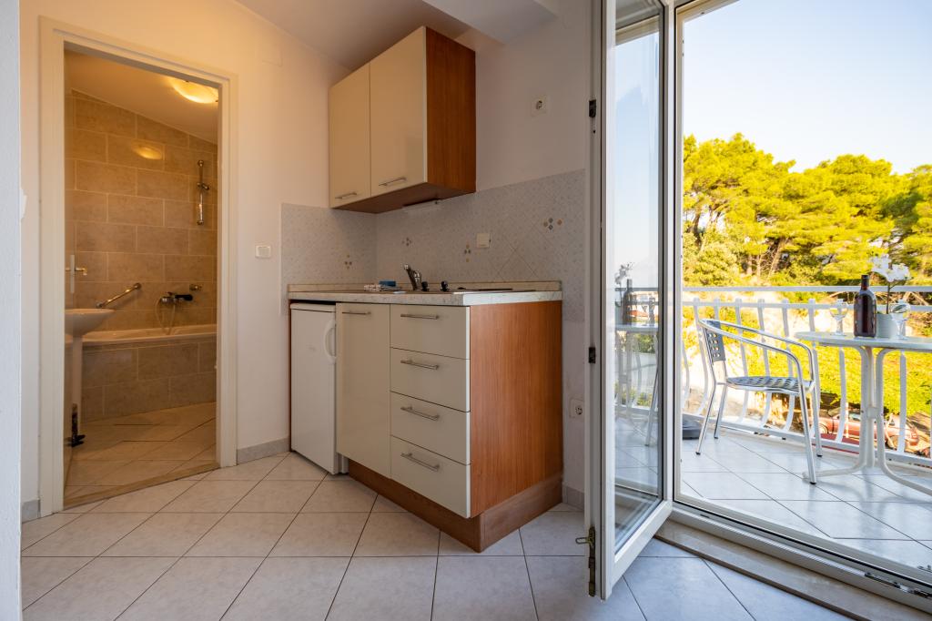 Villa Mandolina is located right above the beach, on the edge of a quiet bay, and all apartments have a terrace with a beautiful view of the sea and nearby islands. Each has a modernly equipped kitchen, bathroom, free WIFI Internet, SAT-TV, air conditioning, shower, towels and linen, living room with sofa bed and dining room. The villa has three 4 types of apartments and prices also vary depending on the size and location in the villa. As our guest, you use the beautiful beach (grill on the beach and at the villa, two deck chairs per apartment free of charge until the end of your stay in the villa, umbrellas, shower on the beach) and parking with video surveillance, all for free!! The beach can be reached by stairs directly from the villa.