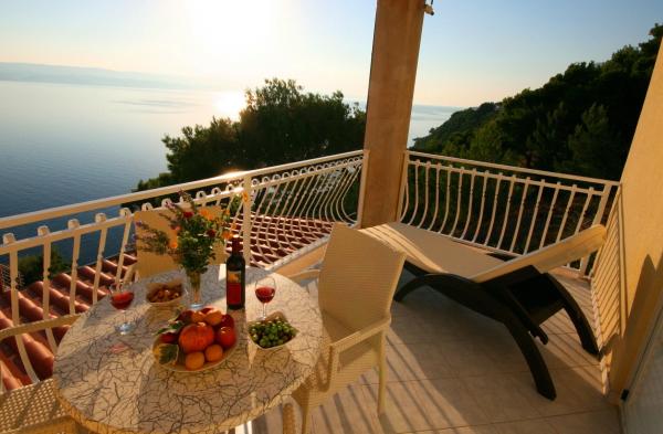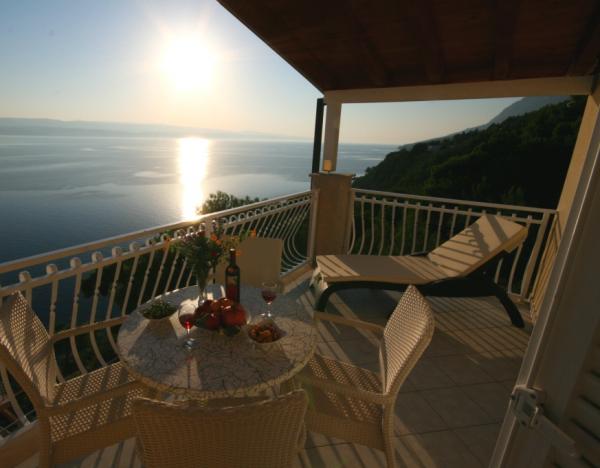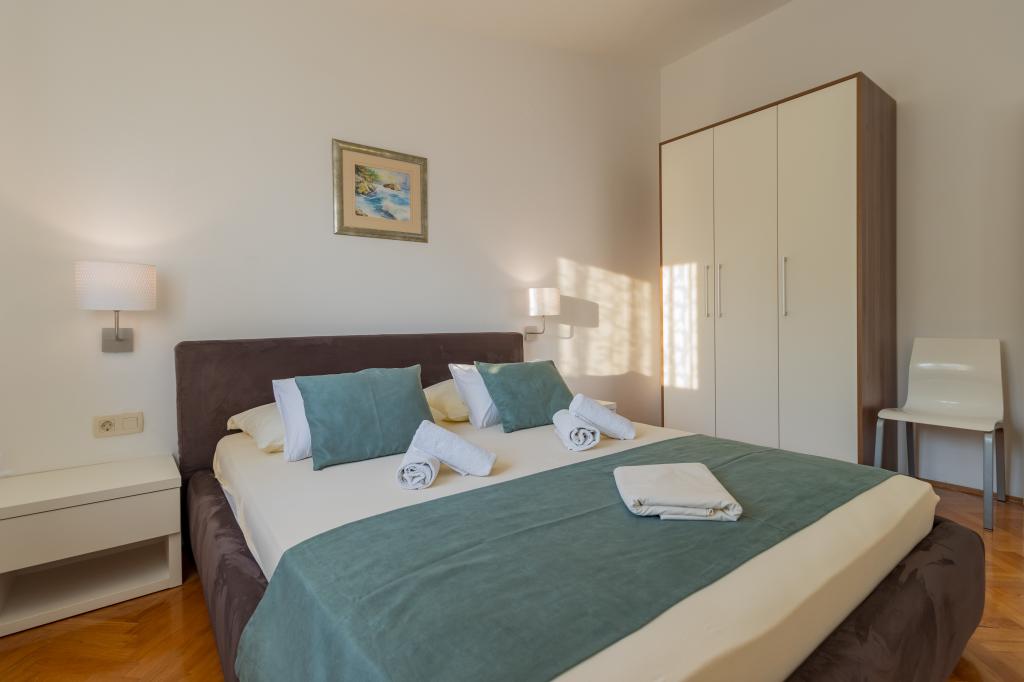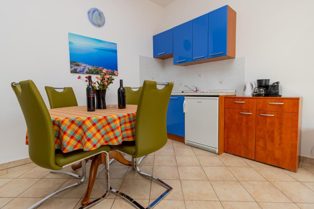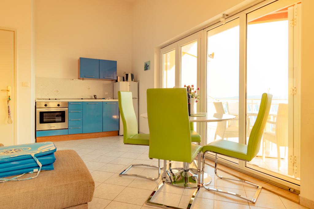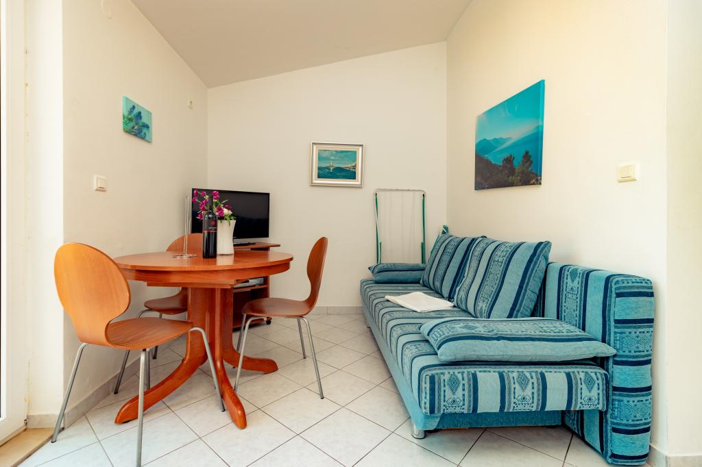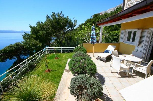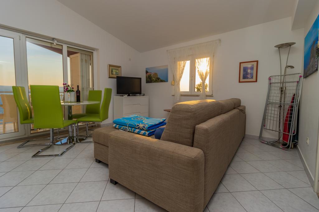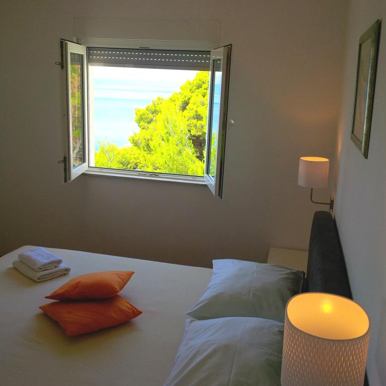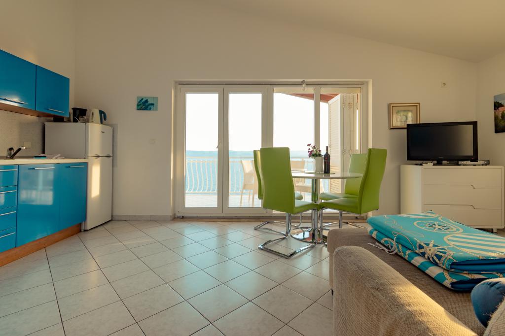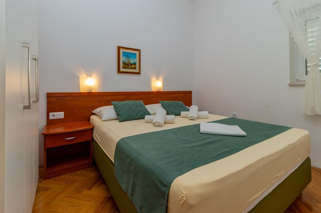 Villa Mandolina is located right above the beach, on the edge of a quiet bay, and all apartments have a terrace with a beautiful view of the sea and nearby islands. Each has a modernly equipped kitchen, bathroom, free WIFI Internet, SAT-TV, air conditioning, shower, towels and linen, living room with sofa bed and dining room. The villa has three 4 types of apartments and prices also vary depending on the size and location in the villa. As our guest, you use the beautiful beach (grill on the beach and at the villa, two deck chairs per apartment free of charge until the end of your stay in the villa, umbrellas, shower on the beach) and parking with video surveillance, all for free!! The beach can be reached by stairs directly from the villa.