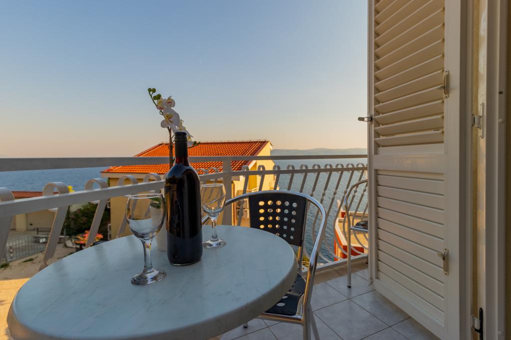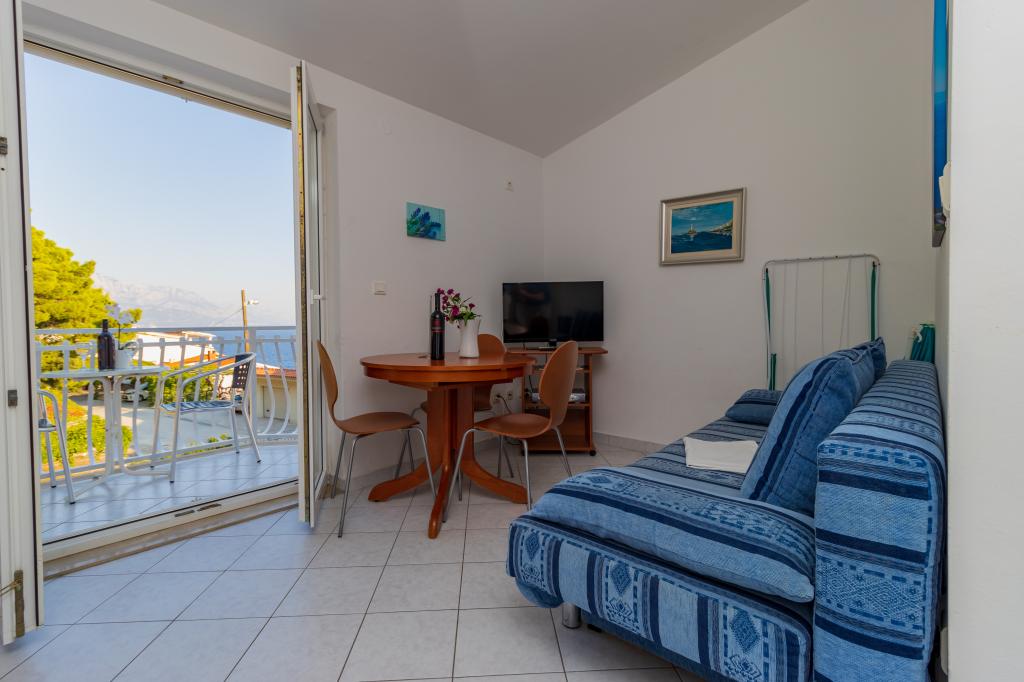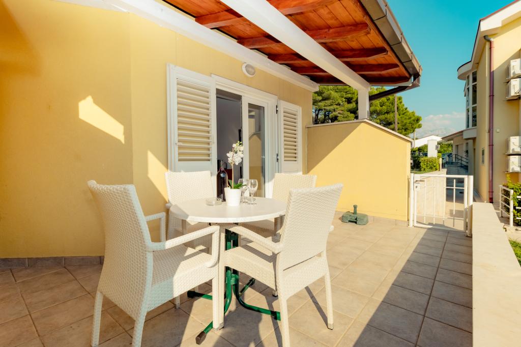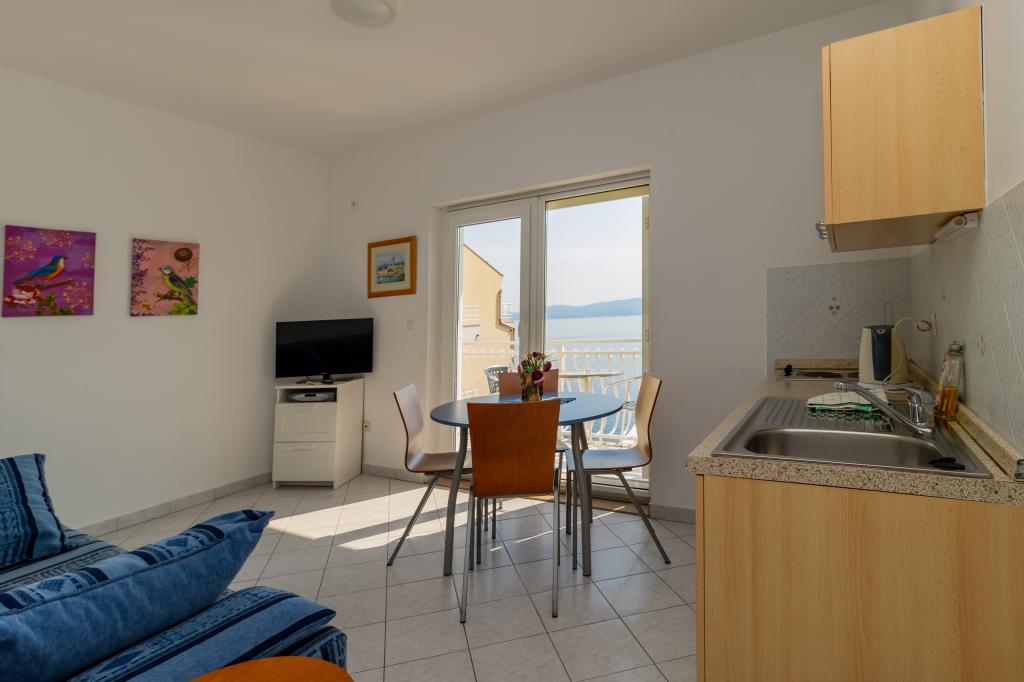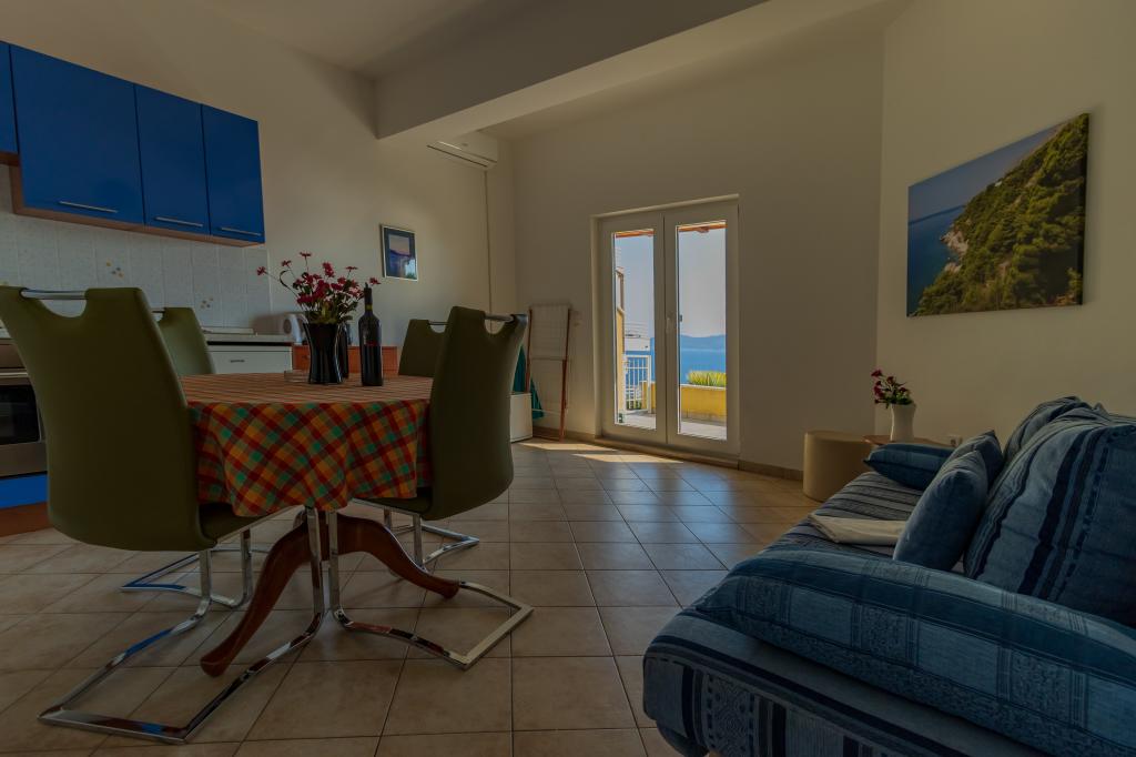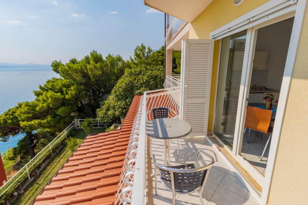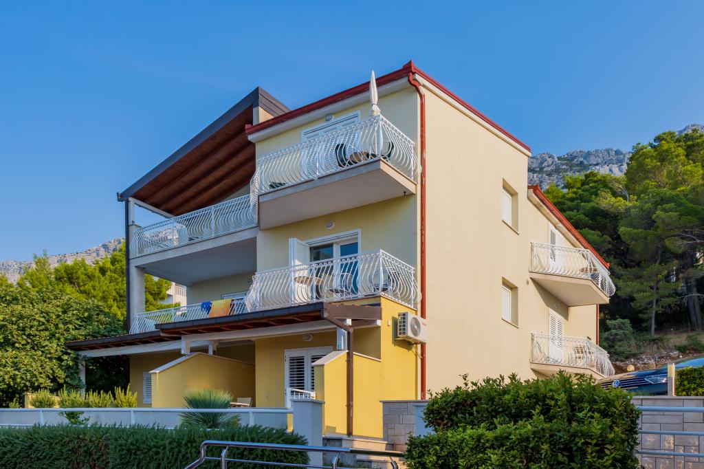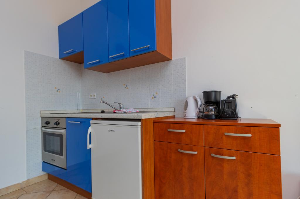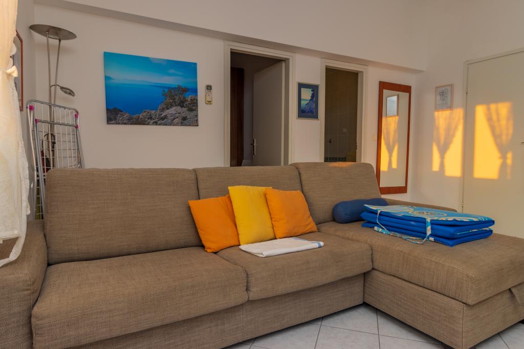 Villa Mandolina is located right above the beach, on the edge of a quiet bay, and all apartments have a terrace with a beautiful view of the sea and nearby islands. Each has a modernly equipped kitchen, bathroom, free WIFI Internet, SAT-TV, air conditioning, shower, towels and linen, living room with sofa bed and dining room. The villa has three 4 types of apartments and prices also vary depending on the size and location in the villa. As our guest, you use the beautiful beach (grill on the beach and at the villa, two deck chairs per apartment free of charge until the end of your stay in the villa, umbrellas, shower on the beach) and parking with video surveillance, all for free!! The beach can be reached by stairs directly from the villa.