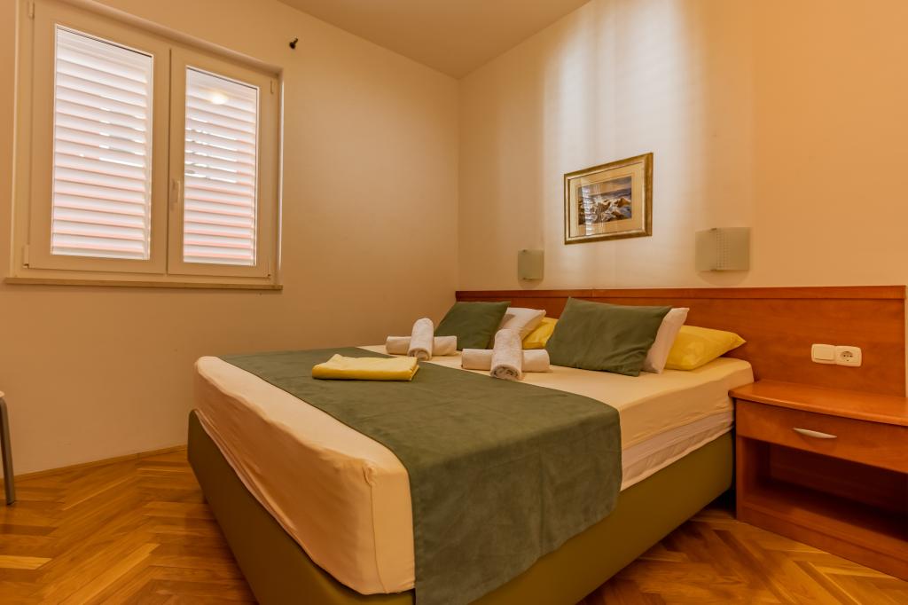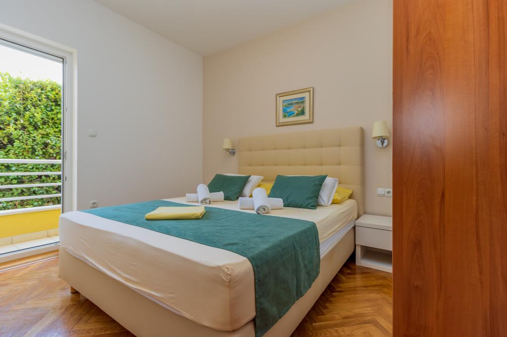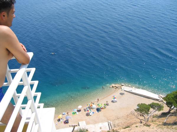 Villa Ruzmarina with an infinity pool is located right above the beach, which is reached by private stairs and captivates with its sea view. Every apartment has a beautiful view of the sea, even every room has a beautiful view. They have two types of apartments, one with two rooms and a living room and the other with one room and a living room. Each apartment has access to the swimming pool and fitness hall, as well as free parking. Also on the beach, the price includes two sunbeds reserved for each apartment and an umbrella.