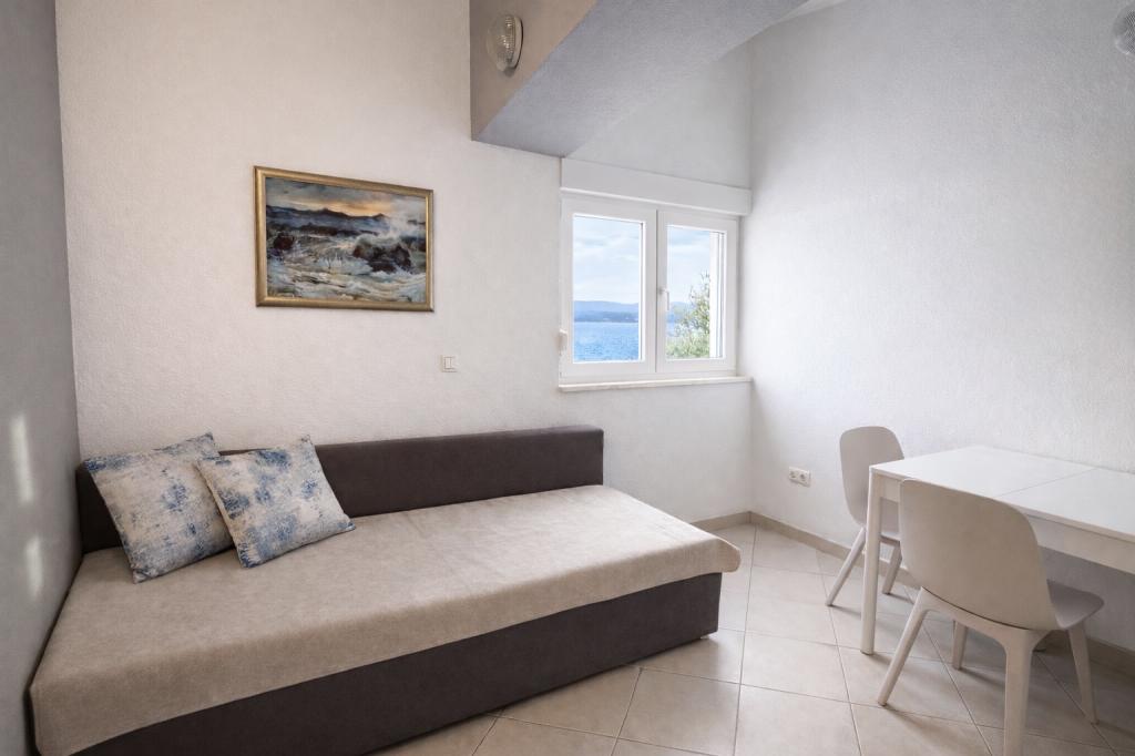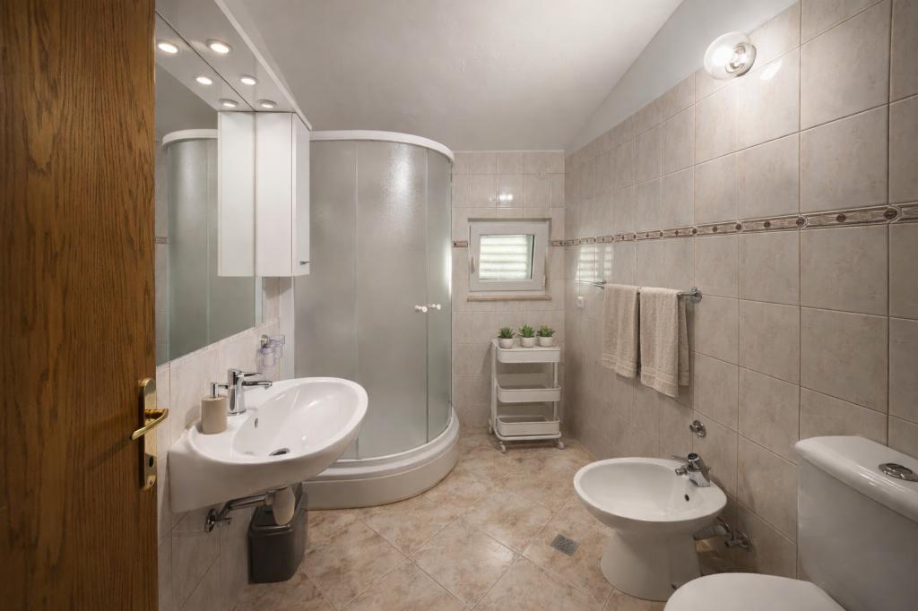 A family house with 3 apartments is located in the quiet village of Marušići, ideal for guests looking for relaxation, privacy and proximity to the sea. The property is located first row to the sea and is surrounded by greenery and offers a pleasant atmosphere away from the city crowds. The house is an excellent choice for couples, friends and families who want a peaceful vacation with crystal clear sea and untouched nature. Due to the stairs (approx. 200) leading to the beach, the property is not suitable for people with disabilities, babies and elderly or people with reduced mobility. Private parking is available to guests, ensuring a carefree arrival and stay.