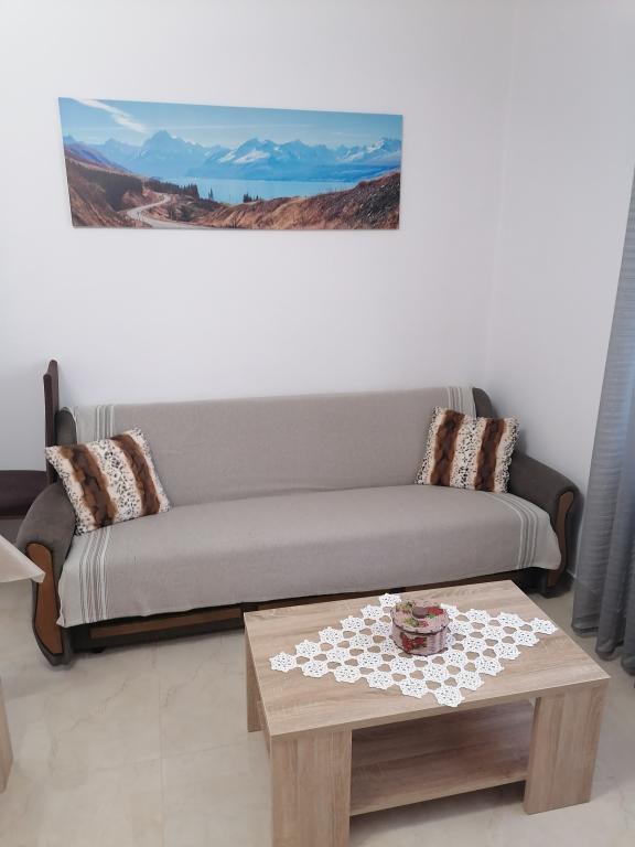 A fully equipped one-room apartment is located in the center of Maslenica, in the first row to the sea. Parking in your own yard. Paklenica National Park and the river Zrmanja are located near the town.