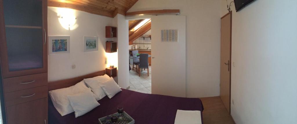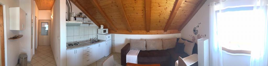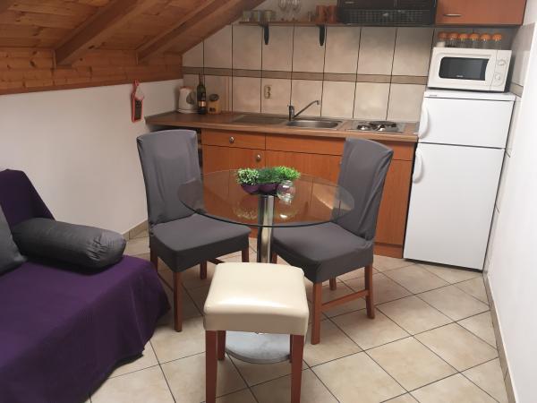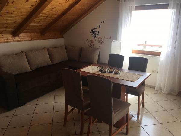 The facility includes a fully equipped apartment, two bedrooms with the possibility to use the kitchen. Located in the center of Maslenica. Distance from the sea 100m.