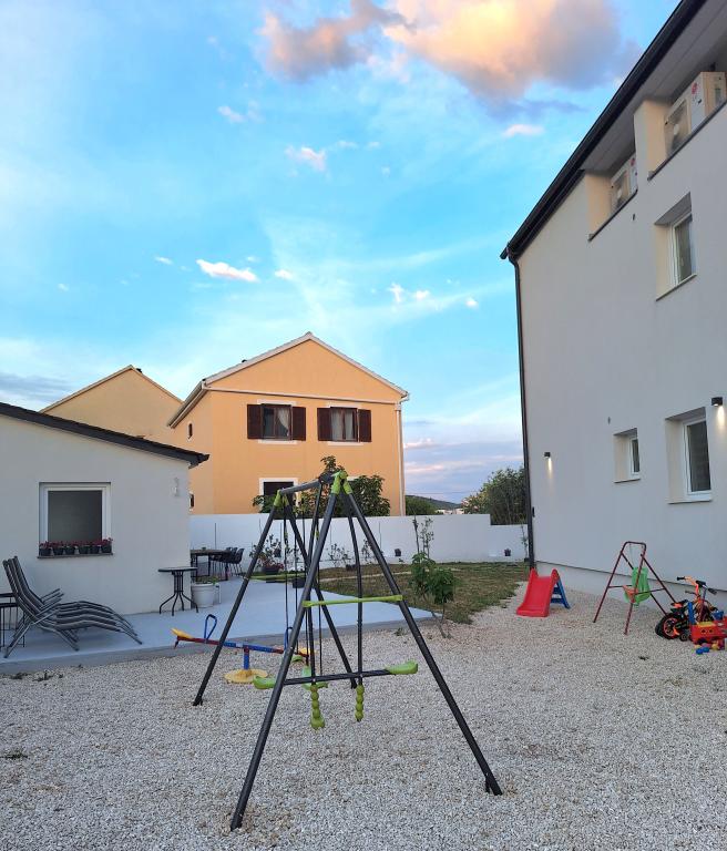 Modern and fully equipped apartments in a quiet part of Maslenica. The facility is located in the center, 250m walk to the shops, 900m walk from the main beach. On the way to the beach you pass by a children's playground, several shops, a vegetable and fruit stand and a bakery.