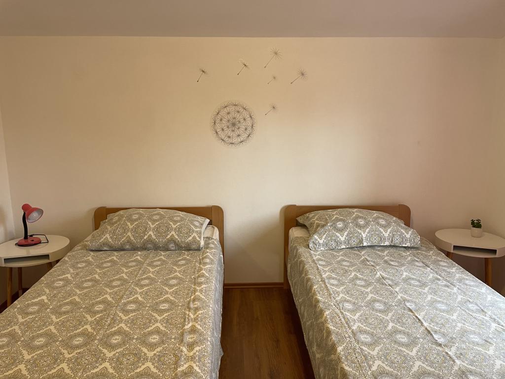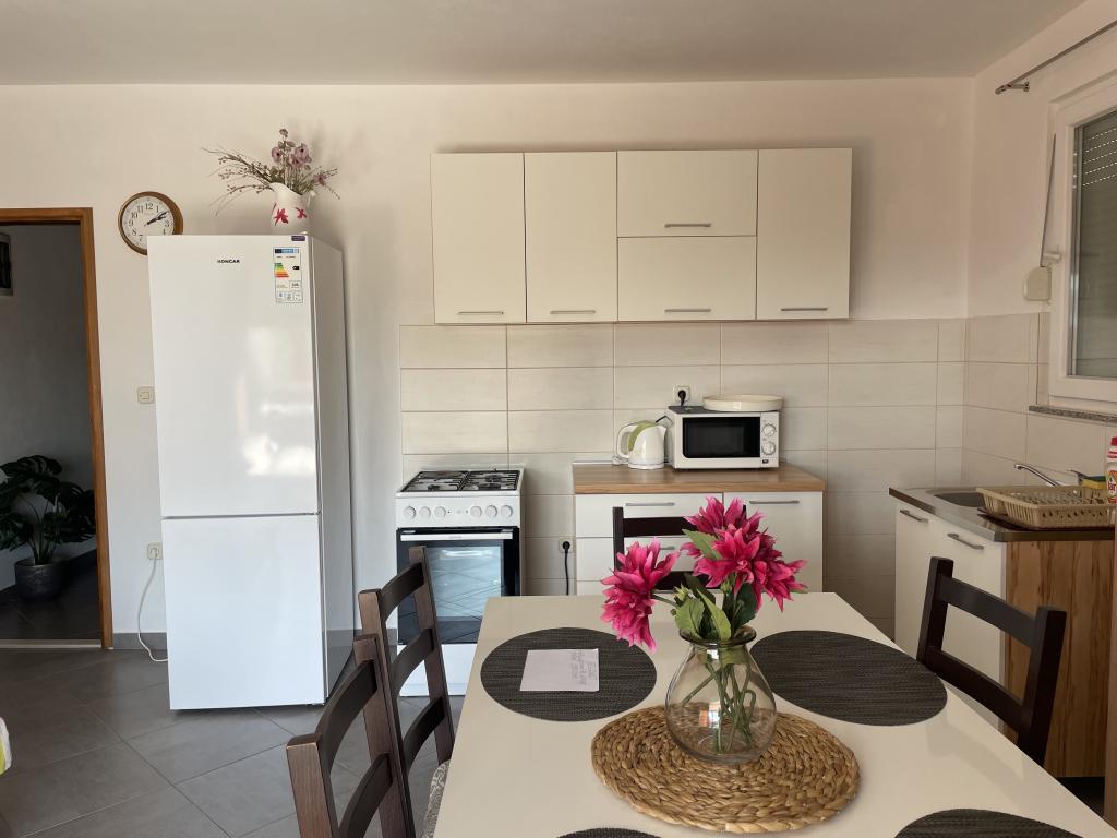 Holiday house of 60 m2 plus a terrace of 31 m2 is located in the center of Maslenica near Zadar on a plot of 1273 m2, away from the beach 5 minutes walk. The owners do not live in the house and the guests are staying in the entire building. The house consists of two bedrooms, bathroom, kitchen-living room and hallway. The terrace has sun protection. Bed linen and towels are changed every 7 (seven) days for stays longer than 7 (seven) days. The kitchen is equipped with all necessary equipment and supplies Tableware and dining. The house is equipped with iron and ironing board machine, dryer, hair dryer, coffee maker and kettle. Using the Internet, air conditioning, satellite TV, parking, hair dryers and washing machines are not naplaćuje.Kuća is located in a quiet area Maslenice with olive trees and other trees around the building. Welcome!