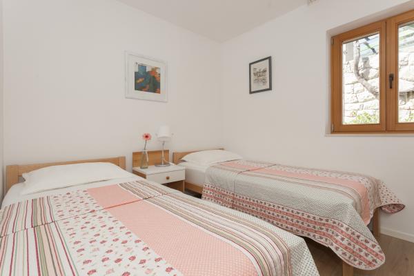 Apartment is located in Maslinica, island of Šolta, an island of olives, wine, figs and honey. Šolta is located just 16 km away from Split and it is ideal for families and all those looking for stress relief holiday. The house is situated in a small village of Maslinica, right by the sea. It consists of four bedrooms, two bathrooms, one big fully equipped kitchen (including dishwasher) and one smaller kitchen, spacious and comfortable living room with big LED TV, fireplace and additional sofa bed, huge terrace with beautiful sea views and spectacular sunset views, all surrounded with garden and Mediterranean trees and plants. Most of the house has been recently refurbished, so you can expect brand new mattresses with memory foam.