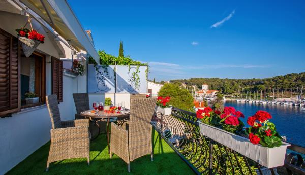 We spent a week in Maslinica at the end of September for fishing and relaxing. Maslinica is a beautiful small village very popular with a sheltered harbour very popular with yachts and sailing boats. The property is in a quiet area of the village, a few steps from the beach and only 5 minutes walk from the small center and the cafes, shops and restaurants. The apartment is very comfortable, very well furnished, spotlessly clean and well maintained; a big terrace overlooking the bay, where we had breakfast and dinner, was an extra bonus. The owner was very friendly and helpful and we had a few drinks conversating in the patio. Definitely highly recommended.