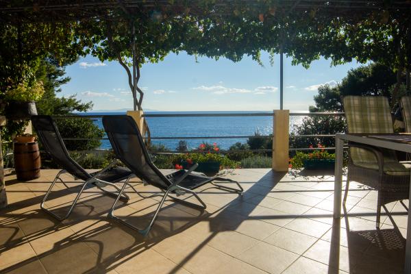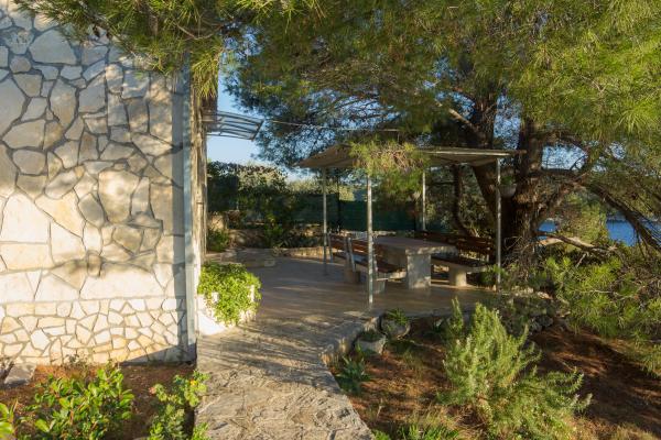 We offer you two smaller stone houses about ten meters apart, each with its own special position offering the intimacy of a pleasant stay. Beautiful panoramic view. The houses are first row to the sea and are located on 1100 m2 of fenced land, to the sea and the concrete beach are 30 m away. The center of Maslinice with restaurants and shops is located 500 m from the houses. The houses can be reached by a road 300 m long. There is also a barbecue, outdoor shower and parking. House Mirta of 45 m2. It has two bedrooms (one double bed, two single beds), living room with extra bed, kitchen, bathroom, terrace 25 m2 with natural shade. House Rusulica of 35 m2. It has two bedrooms (one double bed, two single beds), living room, kitchen, bathroom, terrace 25 m2 with natural shade.