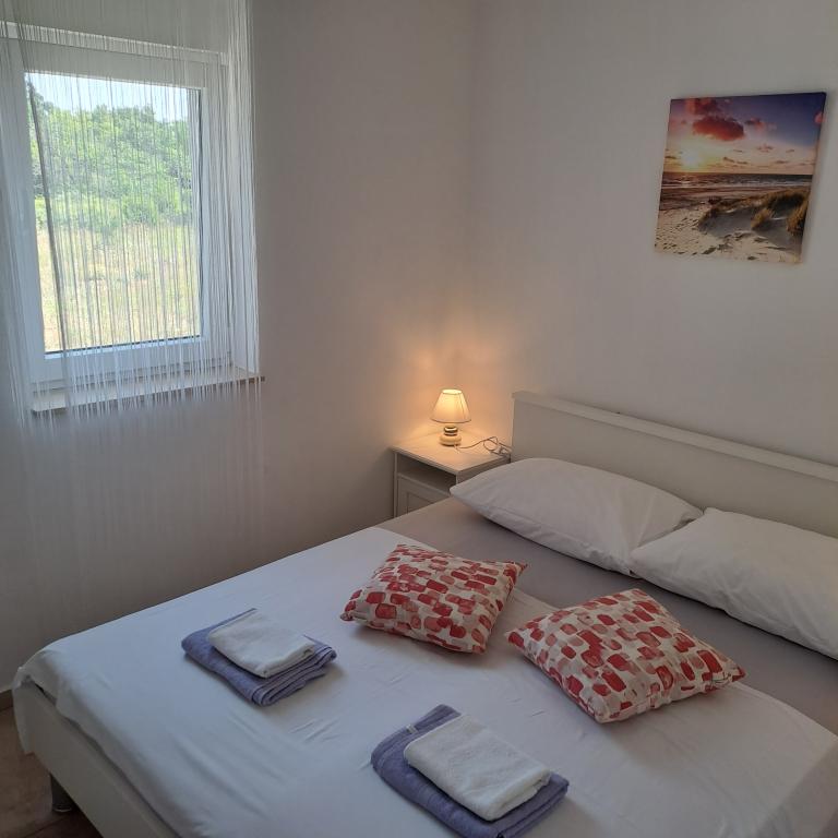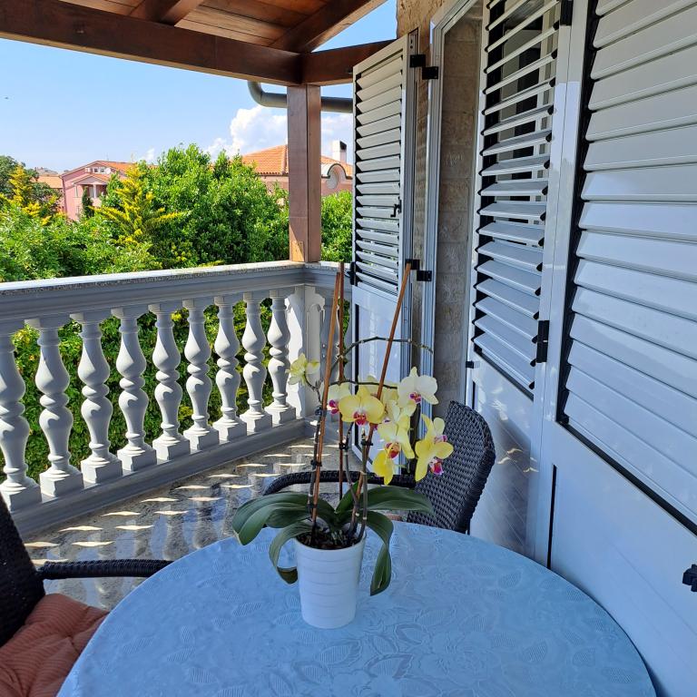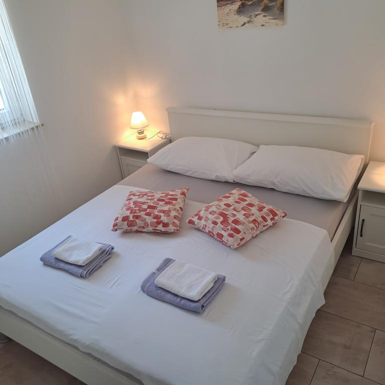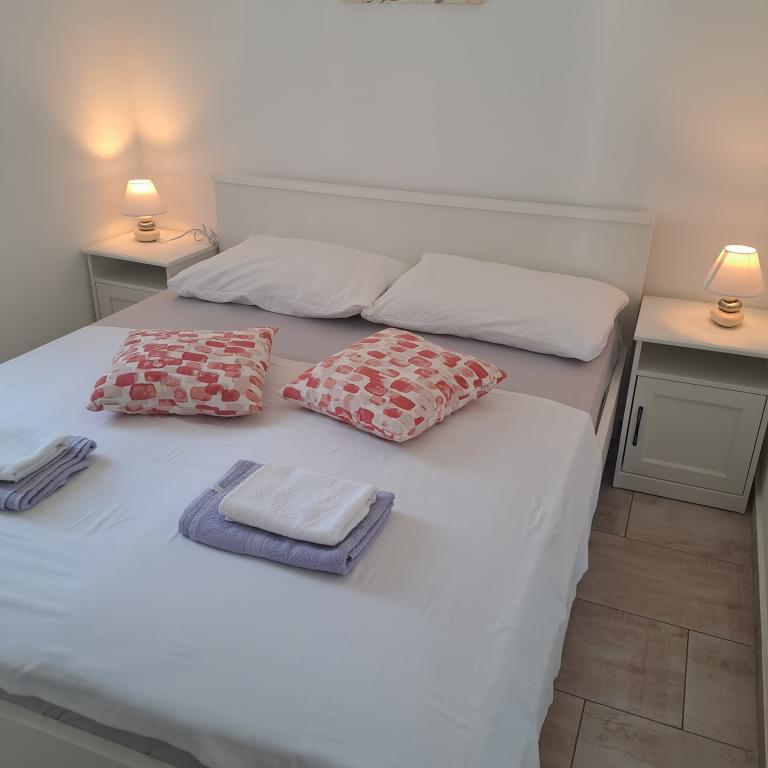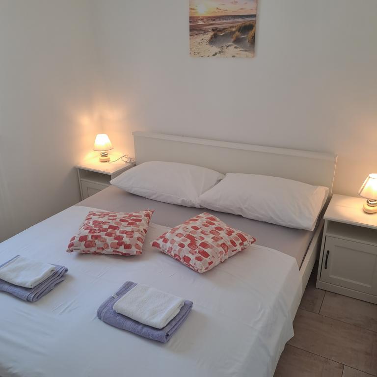 Apartments Mila-Casa Bianca are located in a quiet part of Medulin, only 900m from the center, 500m from the nearest beach Bijelica, offering accommodation with free WiFi, barbecue for use and secured parking for your car. The facility is located 10 min. walk to the sea (walking along the path that leads through the pine forest) to the beach Bijeca or Belvedere, and the center of Medulin is 5-10 minutes on foot (the streets are one-way so on the map it looks further)...Medulin as a tourist resort, in addition to beautiful beaches, offers other services for entertainment and socializing such as a ranch with horses (all information on the internet), sports plane and balloon rides, a diving club, bicycle paths throughout Medulin and the surrounding area, boat trips, beautiful promenades with cheerful events and outdoor food and drink consumption and a rich offer of Istrian prosciutto, wine, olive oil and all the wealth and abundance of our Istria...