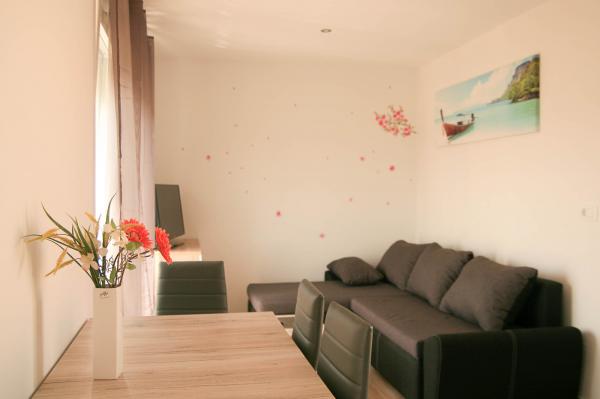 So far, the best apartment where we were. Modern furnished, all appliances, huge terrace, just a few steps from the beach, the city only 10 minutes to the view from the terrace can speak ..... I recommend to all !!!!