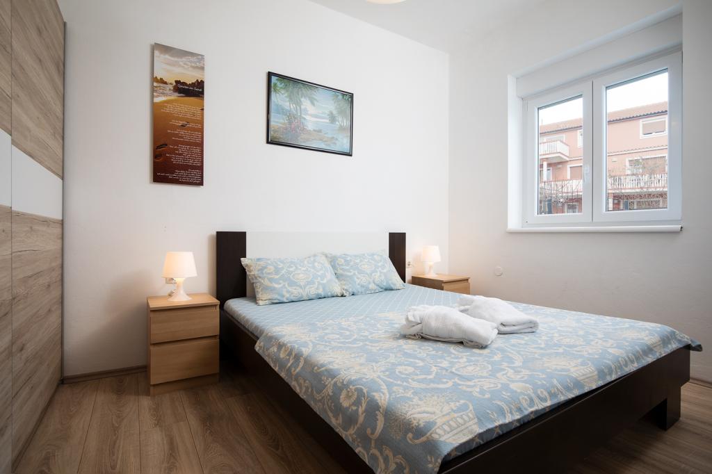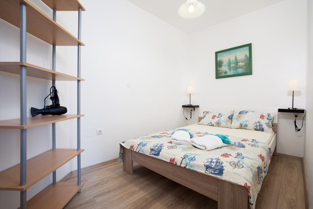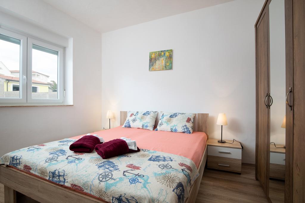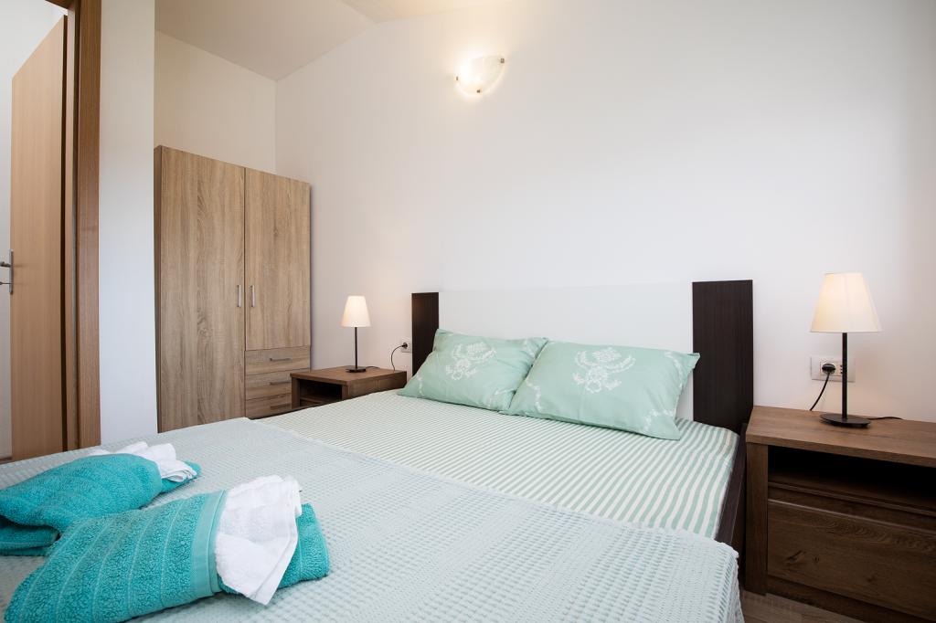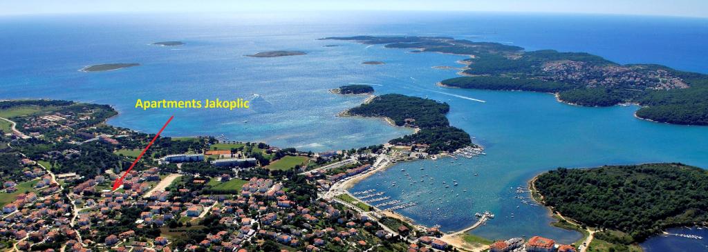 The Jakoplić family house is located in Medulin. There are a total of 7 apartments in the house. Three apartments are located on the first and three on the second floor. They consist of a bedroom with a double bed, a living room with a small kitchen with a sofa bed (1.50x2m). Each apartment has a bathroom and a terrace, and the kitchen has everything you need to cook, including a microwave, toaster, coffee maker and kettle. One apartment for 4 people with a living room and two bedrooms is located on the ground floor, the apartment has a small yard with an outdoor table and barbecue. Each has an LCD TV with satellite channels and wireless internet access (Wi-Fi). The apartments have air conditioning and a parking space for each, bed linen is included in the price, as well as two towels per person per week. The beach is only 500 meters away.