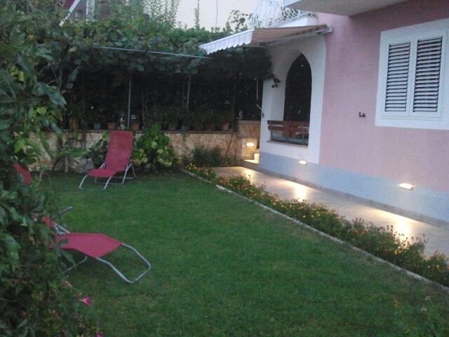 Very nice and cozy, the hosts are very kind and accommodating, the apartment has a nice view of the sea and a lot of space with a terrace and an outdoor kitchen, the proximity to the beach is great and quiet enough for families with children, also recommended for pets