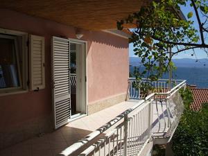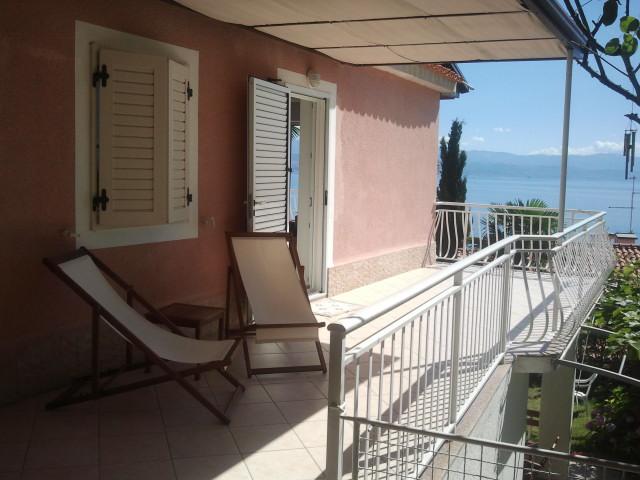 The house is located in the greenery above the pebble beach, on the slopes of the Učka Nature Park. In the fenced yard there is a parking lot, a flower garden, a lawn, a brick grill with a table for 12 people. On the southern and eastern part of the house, there are two fully equipped and modernly decorated apartments, with terraces that are mostly covered and pleasant to stay during the whole day. Both apartments and both terraces have a view of the sea. Guests who rent both apartments have the entire garden at their own disposal. Due to the 60m proximity to the beach and the spacious interior and exterior space, the accommodation is ideal for families with children and pets. Exceptionally large, intimate terrace of the apartment on the first floor with a beautiful view of the sea, peaceful surroundings, crystal clear sea, possibility of active vacation, forest trails, lungomare, mountain biking, close to Opatija. The ground floor apartment has two separate bedrooms with 3 and 2 beds each + two bathrooms, living room + 2 additional beds. The upstairs apartment has two rooms with 2 and 3 beds.